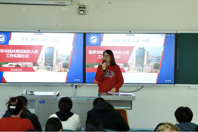 2024-03-20为深入学习习近平新时代中国特色社会主义思想和党的二十大精神,贯彻落实新时代党的建设总要求和新时代党的组织路线,做好新时代党员教育工作,推进基层党支部规范化标准化建设,3月20日下午,勤学书院党务骨干培训班在文荟楼130教室顺利开班。书院党委副书记靳永雄、杨扬,各学生党支部支委成员、班级团支部书记参加此次培训。在第一讲中,杨扬着重从推荐入党积极分子、推荐党的发展对象、优先推荐、培养考察等方面详细介绍了共青团推优入党工作实施办法。她强调,推荐优秀共青团员作党的发展对象是党赋予共青团组织的一项光荣任务,各团支部要切实履行职责,严格按照规定程序和标准开展相关工作,加强对推优人员的培养和考察,为党组织输送更多优秀人才。在第二讲中,党建思政中心辅导员姚硕通过解读《中国共产党支部工作条例(试行)》重点内容,从党的基层组织建设、党员教育管理监督、发展党员及材料规范填写四个方面介绍了基层党支部规范化标准化建设的具体要求和常见难题。靳永雄在总结中强调各党支部要深刻把握推进基层党支部规范化标准化建设的重要意义,全体党务骨干要切实履行好职责,严格落实“第一议题”、“三会一课”等制度,抓实理论武装和实践历练,通过打造“党建标杆”,充分发挥基层党组织的战斗堡垒和先锋模范作用,不断助力书院党建工作内涵式发展