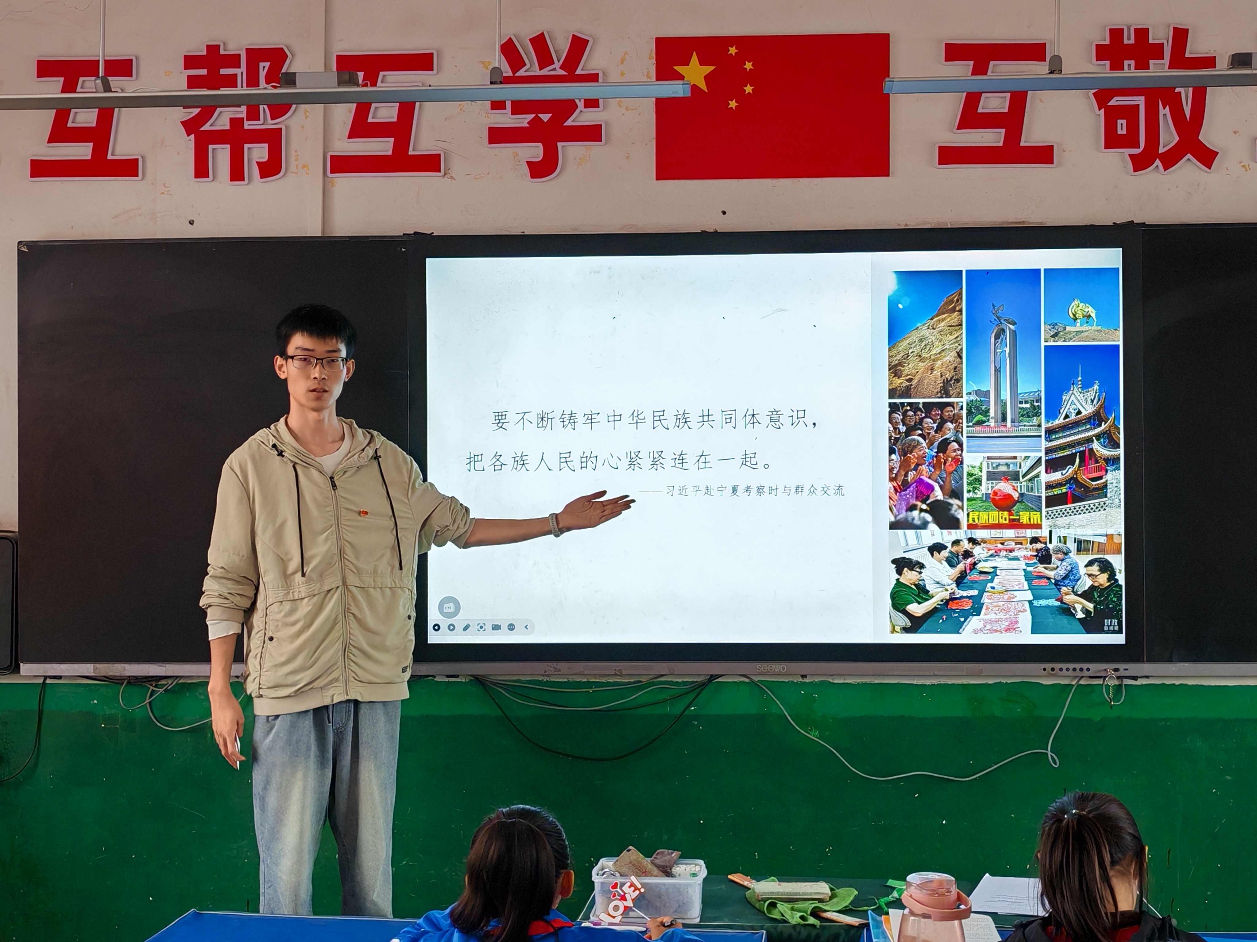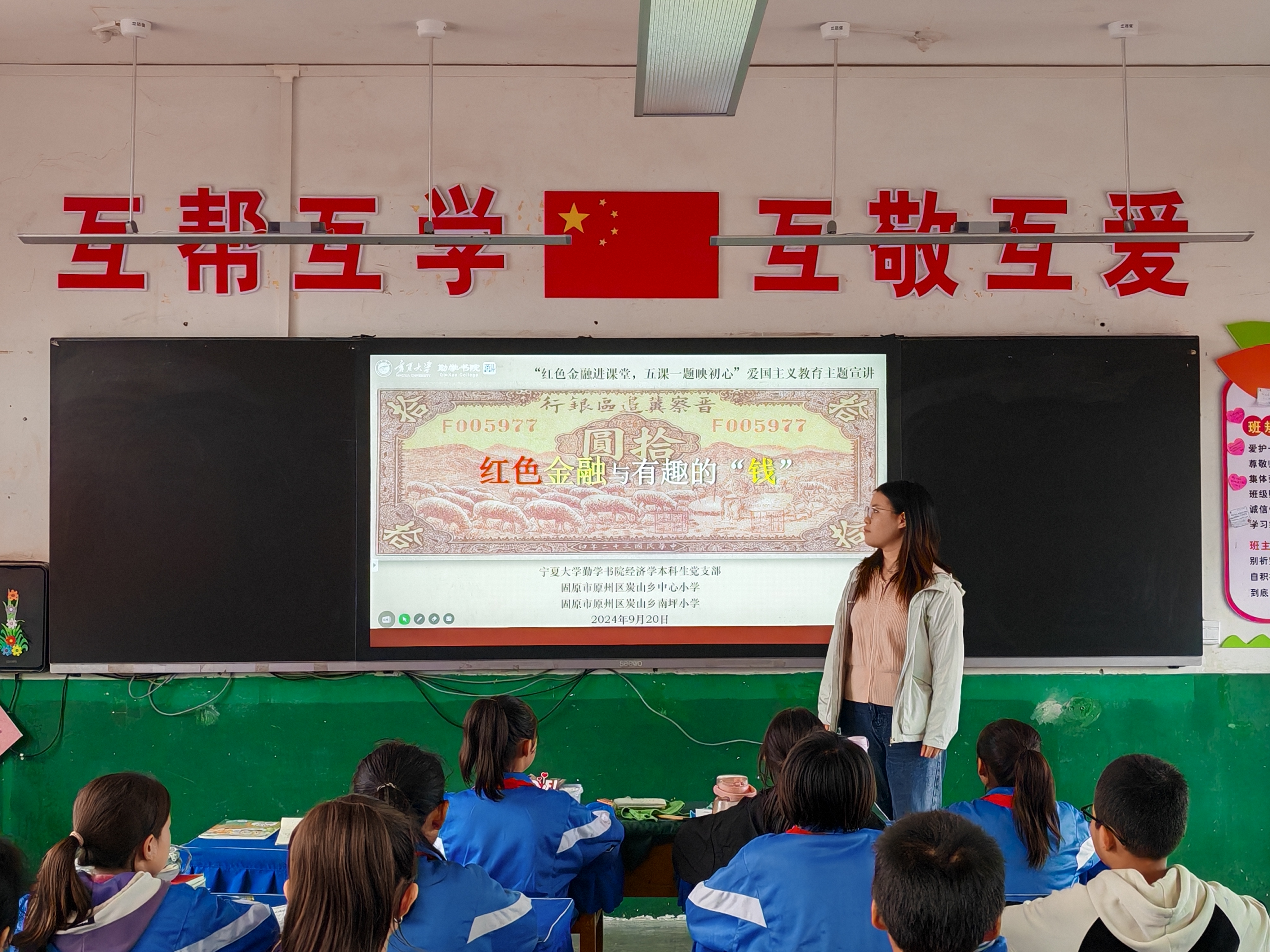 为深入学习贯彻党的二十届三中全会精神和习近平总书记考察宁夏重要讲话精神,充分发挥红色文化的教育作用,激发学生爱国情怀和民族自豪感,9月20日,勤学书院经济学本科生党支部“勤学课堂”宣讲团与宁夏大学“振兴乡村教育”研究生支教团合作前往固原市原州区炭山乡南坪小学开展“石榴花开校园·籽籽同心向党”——铸牢中华民族共同体意识主题党日活动与“红色金融进课堂,五课一题映初心”爱国主义教育主题宣讲活动。南坪小学师生代表参加活动。