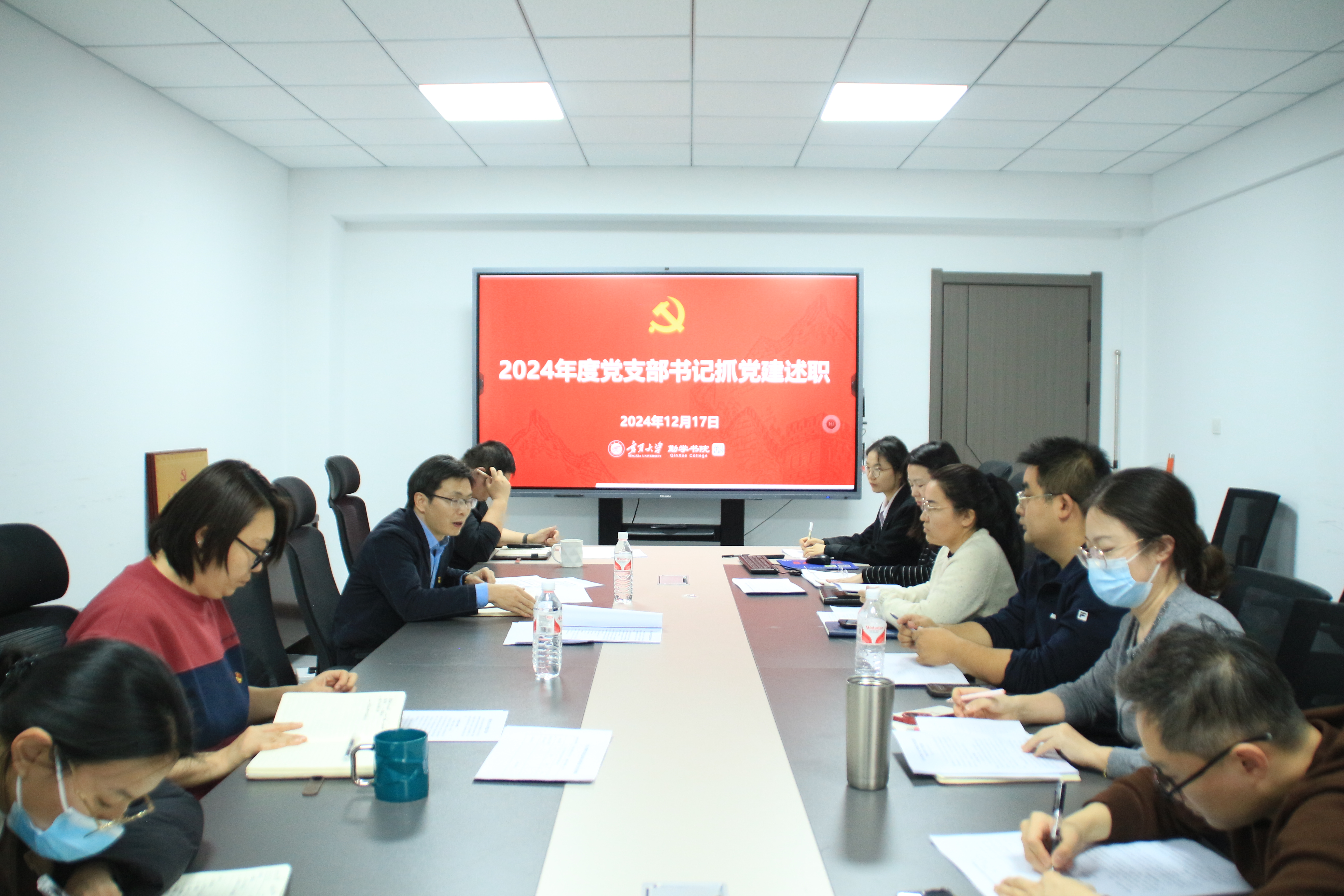 12月17日,勤学书院召开2024年度基层党支部书记述职评议会,书院党委委员和各党支部书记参加会议。会议由书院党委副书记靳永雄主持。