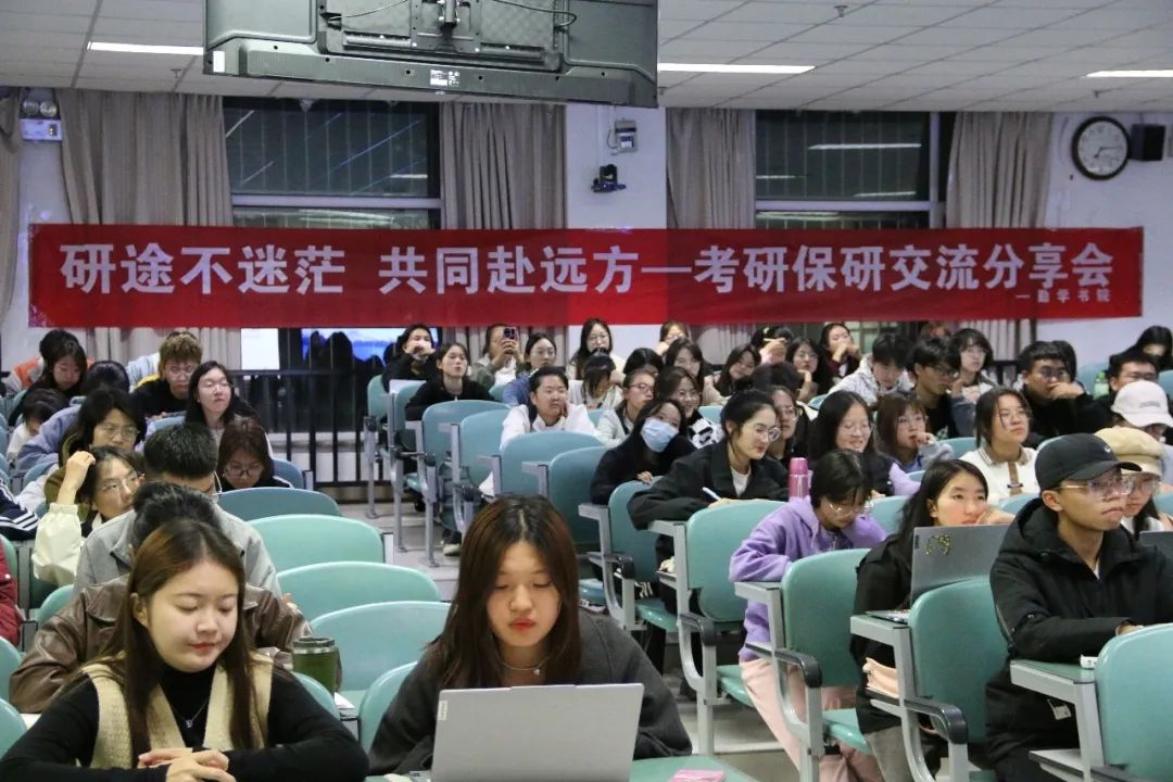 宣讲会分为学长学姐考研保研经验分享、相关政策分享和学生互动三个环节。