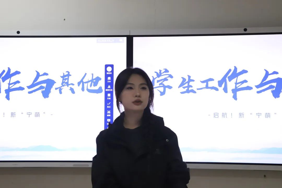 校级学生组织成员李天依和吴枝腾以自己的学生工作经历为切入口,向新生介绍了宁夏大学校级学生组织的基本情况,用自身经历阐释为什么要做学生工作者,以及作为一个学生工作者应具备的素质和能力。他们的宣讲使得大家对学生工作有了更加深入的了解,也对学生工作更加向往与憧憬,相信在接下来的学生工作中,一定会有更多的新鲜血液流淌在宁夏大学这个集体中,输出更多属于自己的智慧成果。