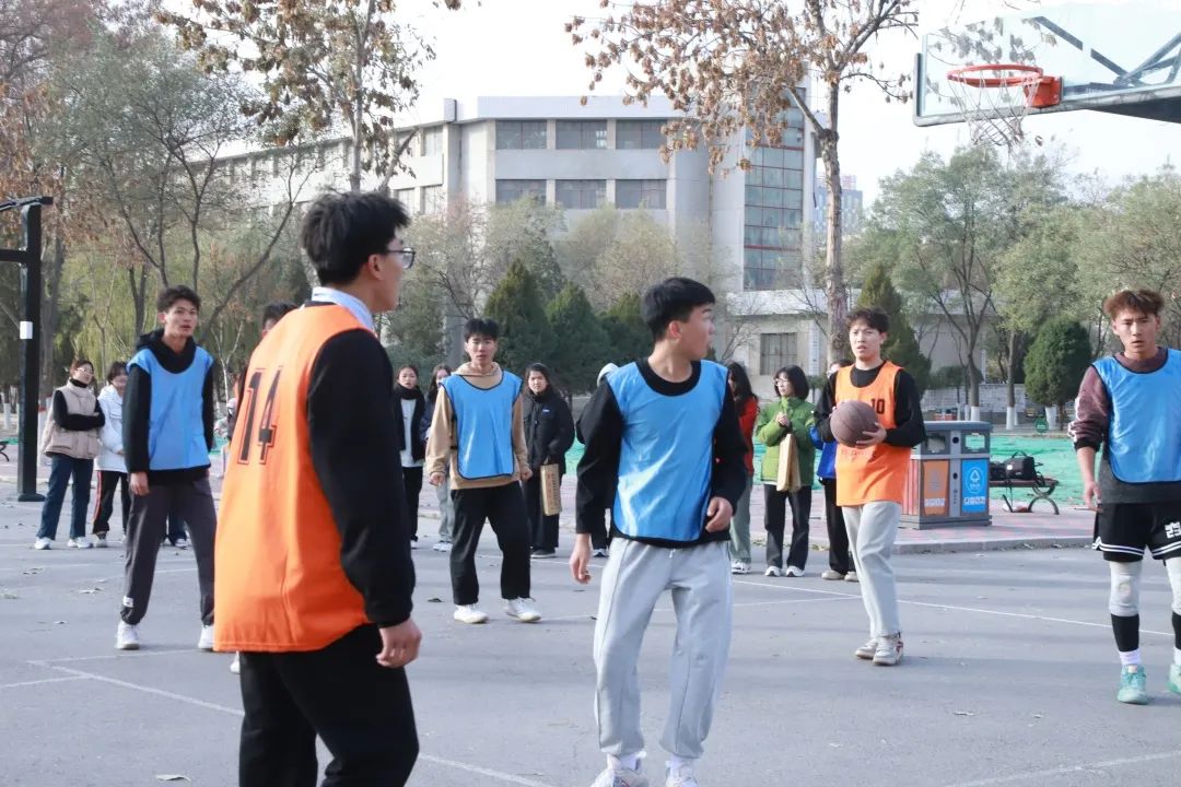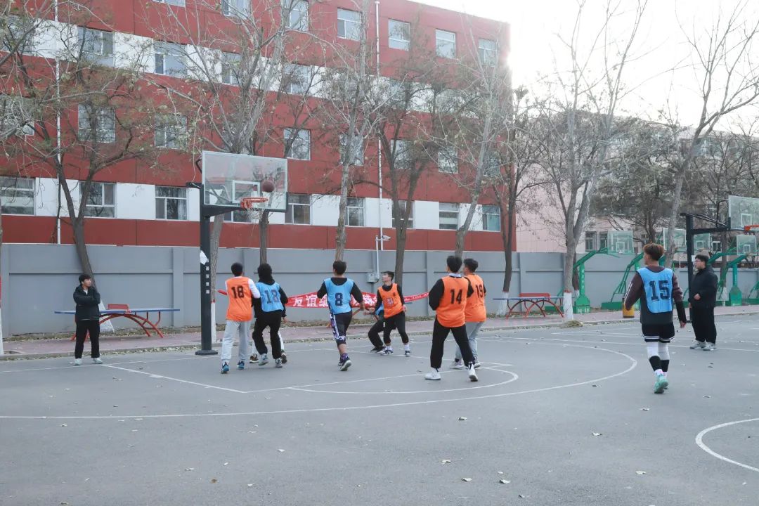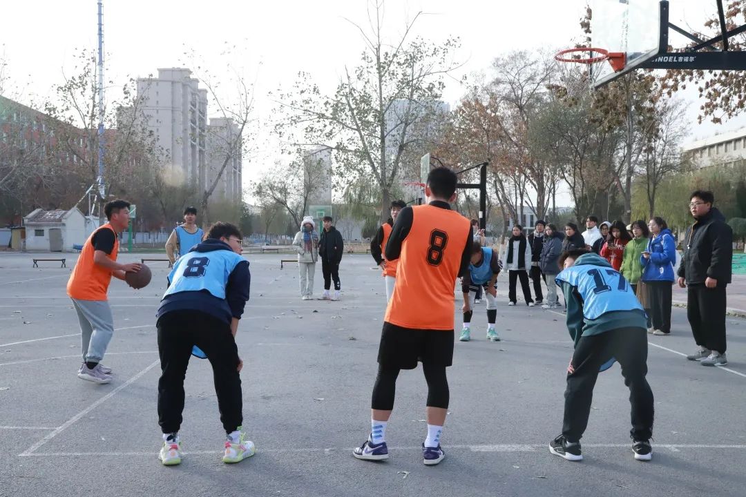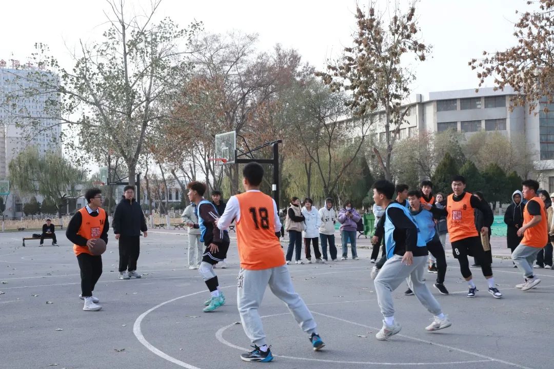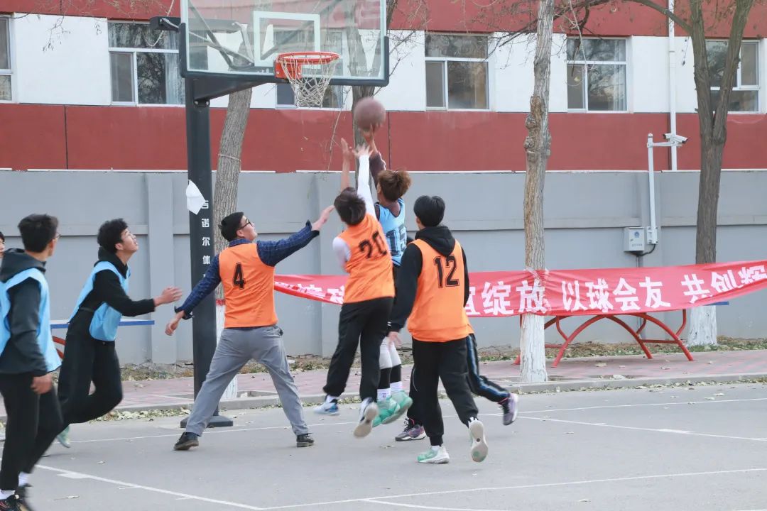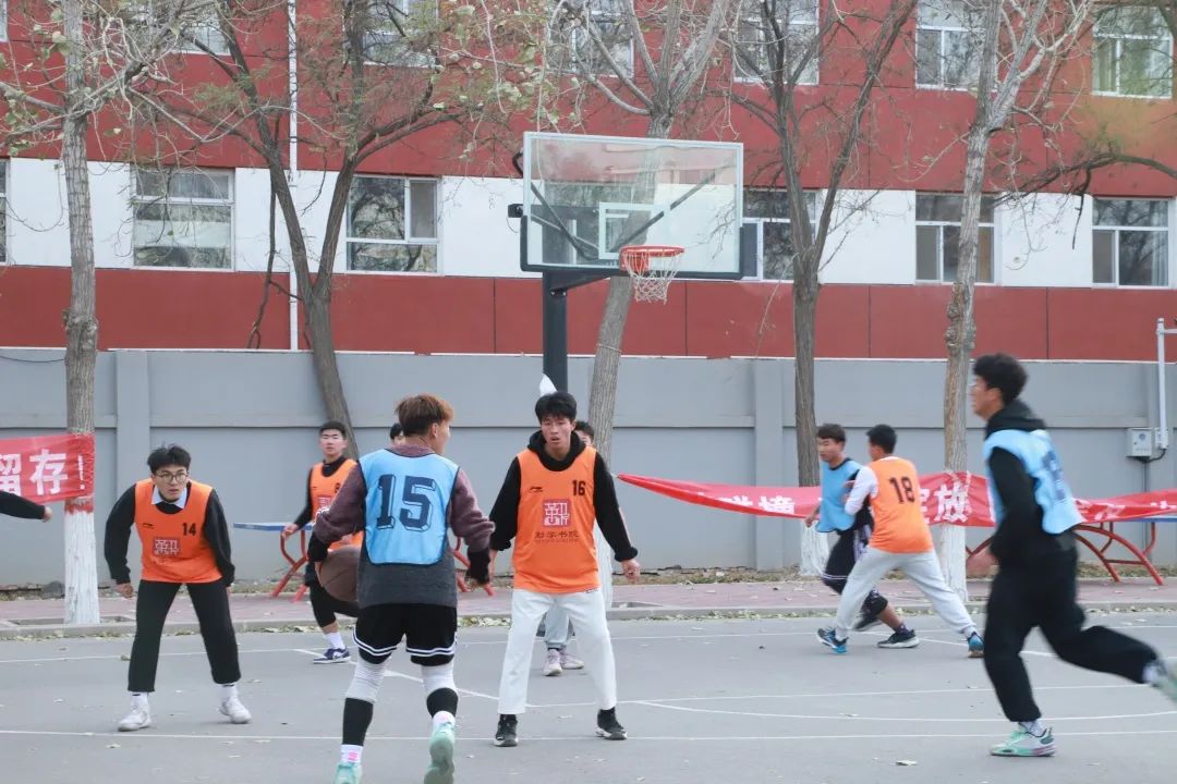 橙蓝碰撞,篮球场上展风采。以球会友,友谊情深永留存。