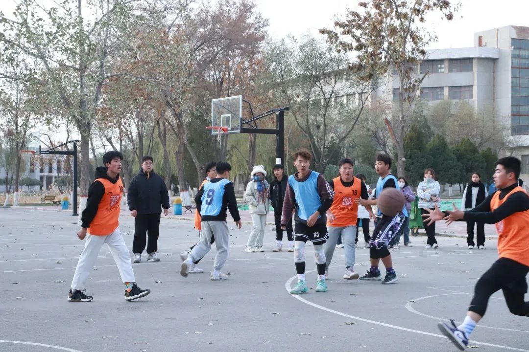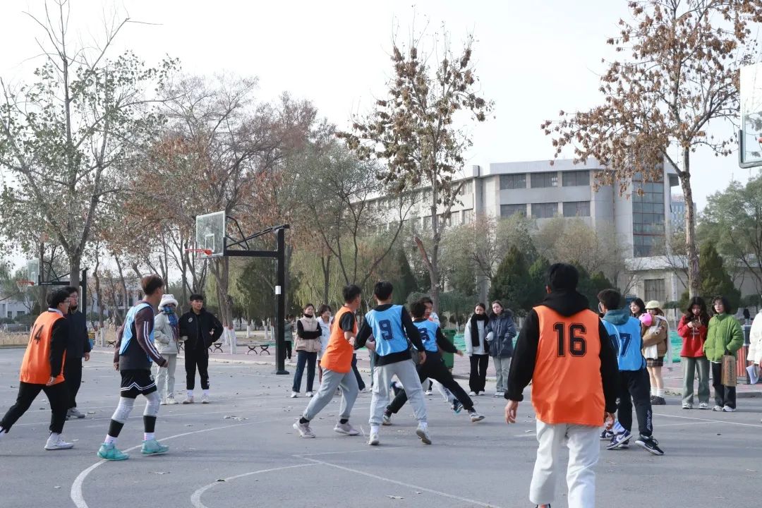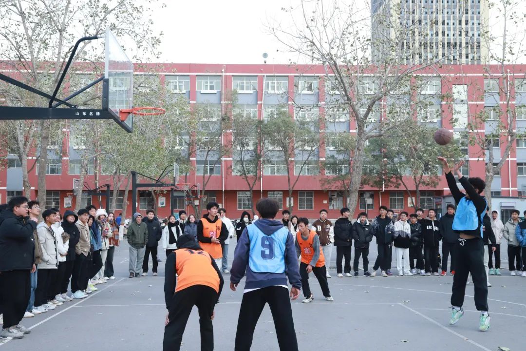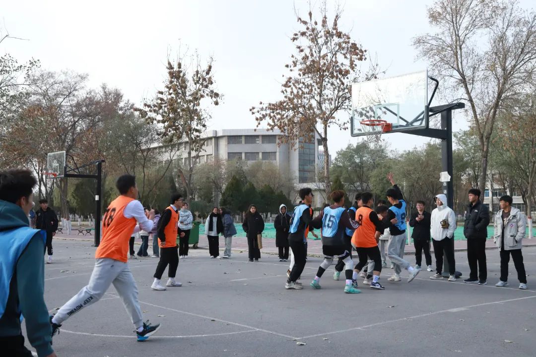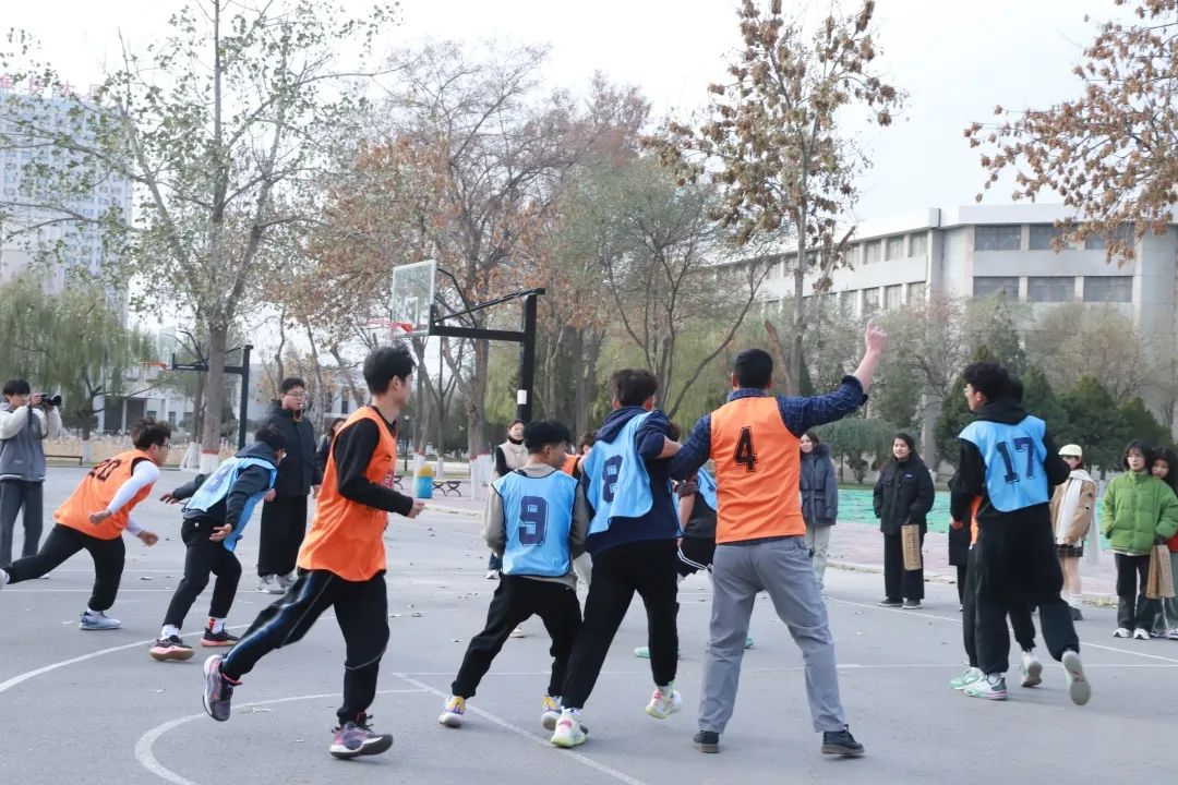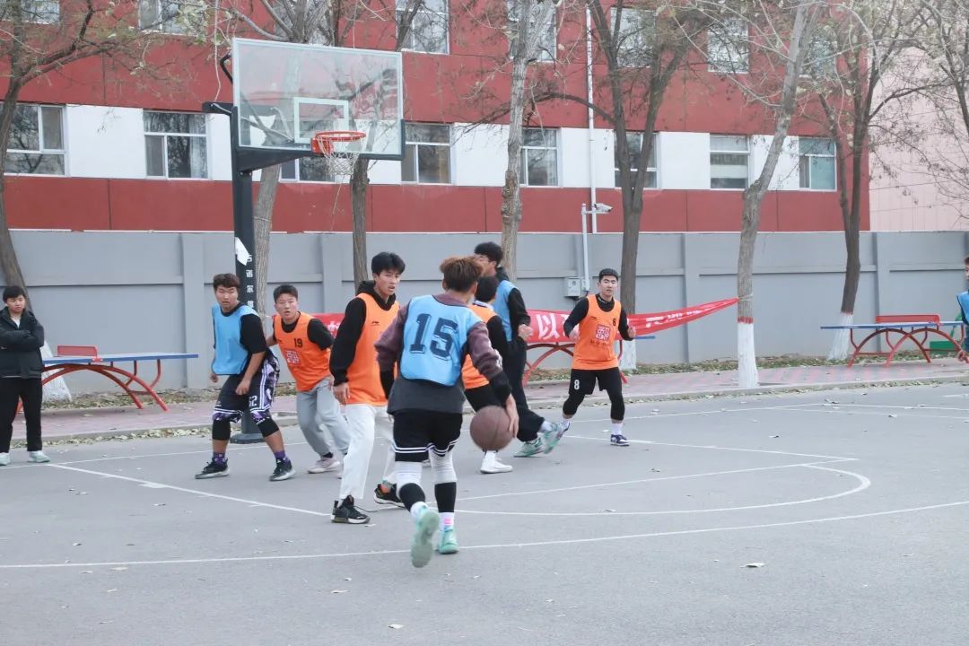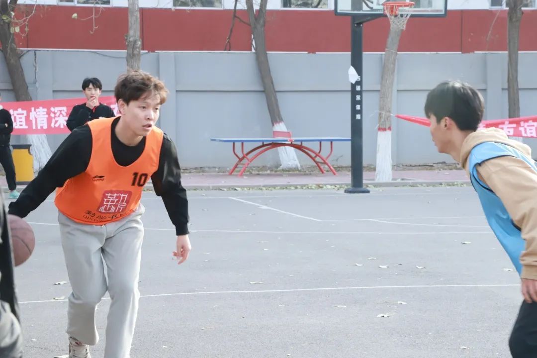 橙蓝碰撞,篮球场上展风采。以球会友,友谊情深永留存。