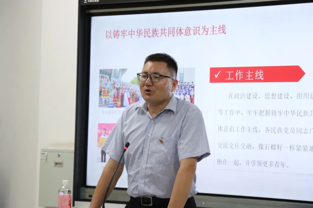 为引导激励广大青年铸牢中华民族共同体意识,促进各民族师生交往交流交融,5月23日,勤学书院于兰山一教A阶102顺利开展了“石榴籽,民族情”民族融合系列讲座。本次讲座由勤学书院辅导员艾萨·阿尤普主讲,勤学书院入团积极分子参加。