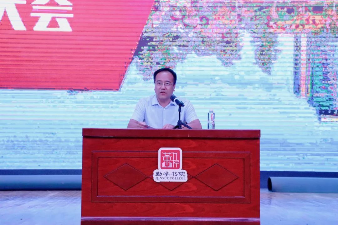 在庄严的国歌声中,勤学书院入学教育大会正式拉开帷幕。王巳卉代表书院全体教师向新加入书院大家庭的2023级同学们致以新学期的问候。