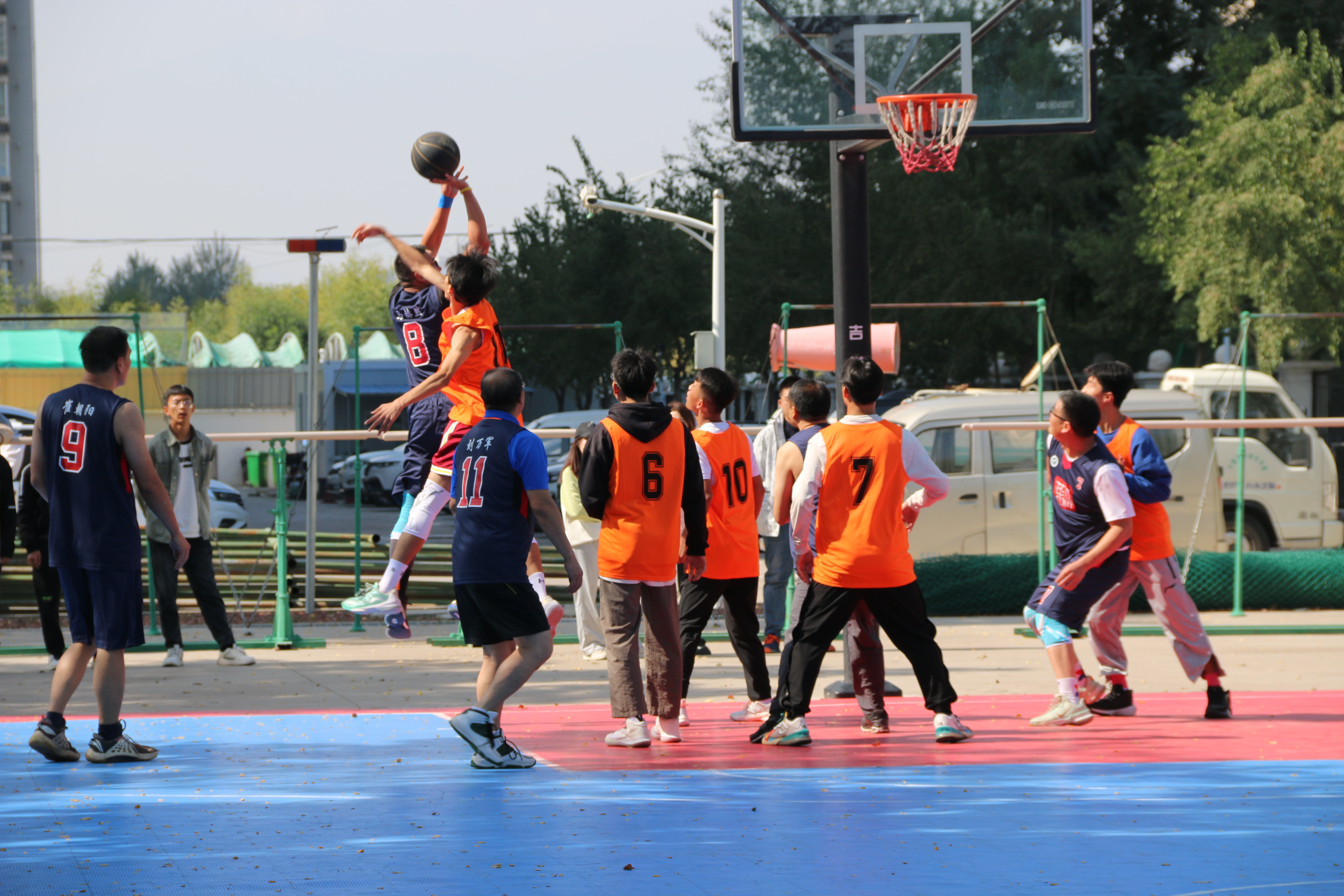 时间来到最后一节,比赛进入了白热化阶段。队员们热情愈发高涨,运球、转身、变向、突破、跳投,一系列动作行云流水、一气呵成。偶有失误,队员们相互鼓励,咬牙坚持。“快到时间了,再进一球呀”“加油,加油”观众为场上的队员们加油鼓气。