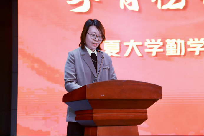 志愿服务先进个人代表任翔宇从志愿活动的组织和参与出发,诉说了志愿服务过程中遇到的困难以及培养出来的能力,并鼓励大家要始终践行“沙枣树精神”,为学校、书院和社会发展作出自己的贡献。