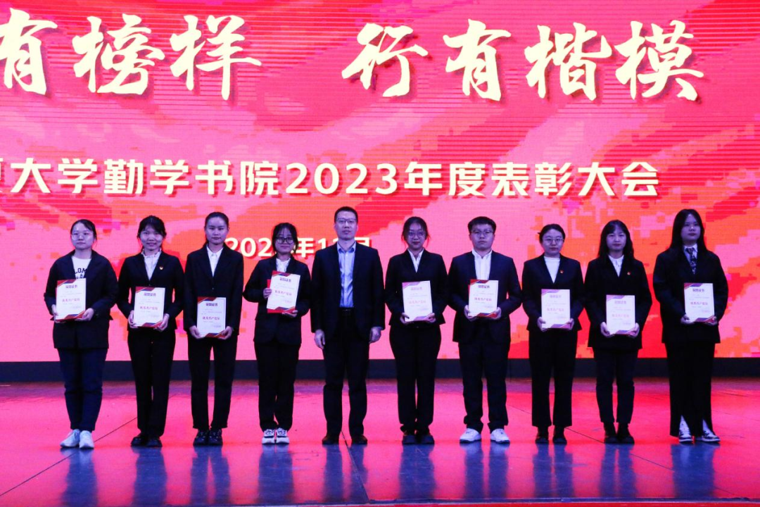 随后,与会领导、老师为获奖学生颁发荣誉证书和奖品。向善的信念如火,一腔热血践行使命,大爱的誓言无声,满怀赤诚坚守初心。勤学学子在各项活动中展现出中国青年的本色与担当,用实际行动践行着“尚德、勤学、求是、创新”的校训精神,正学风,促自律,以奋斗姿态激扬青春,不负时代,不负韶华。