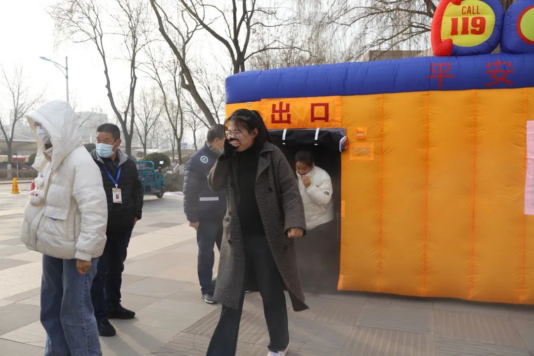 二是疏散逃生。师生们在移动烟雾逃生体验馆内进行疏散逃生培训。体验馆内完全模拟室内着火、断电、烟雾笼罩下的场景,室内光线暗、烟雾大,能见度很低,但是师生们依旧保持镇定,弯腰捂鼻,根据墙面疏散标识方向迅速逃生。