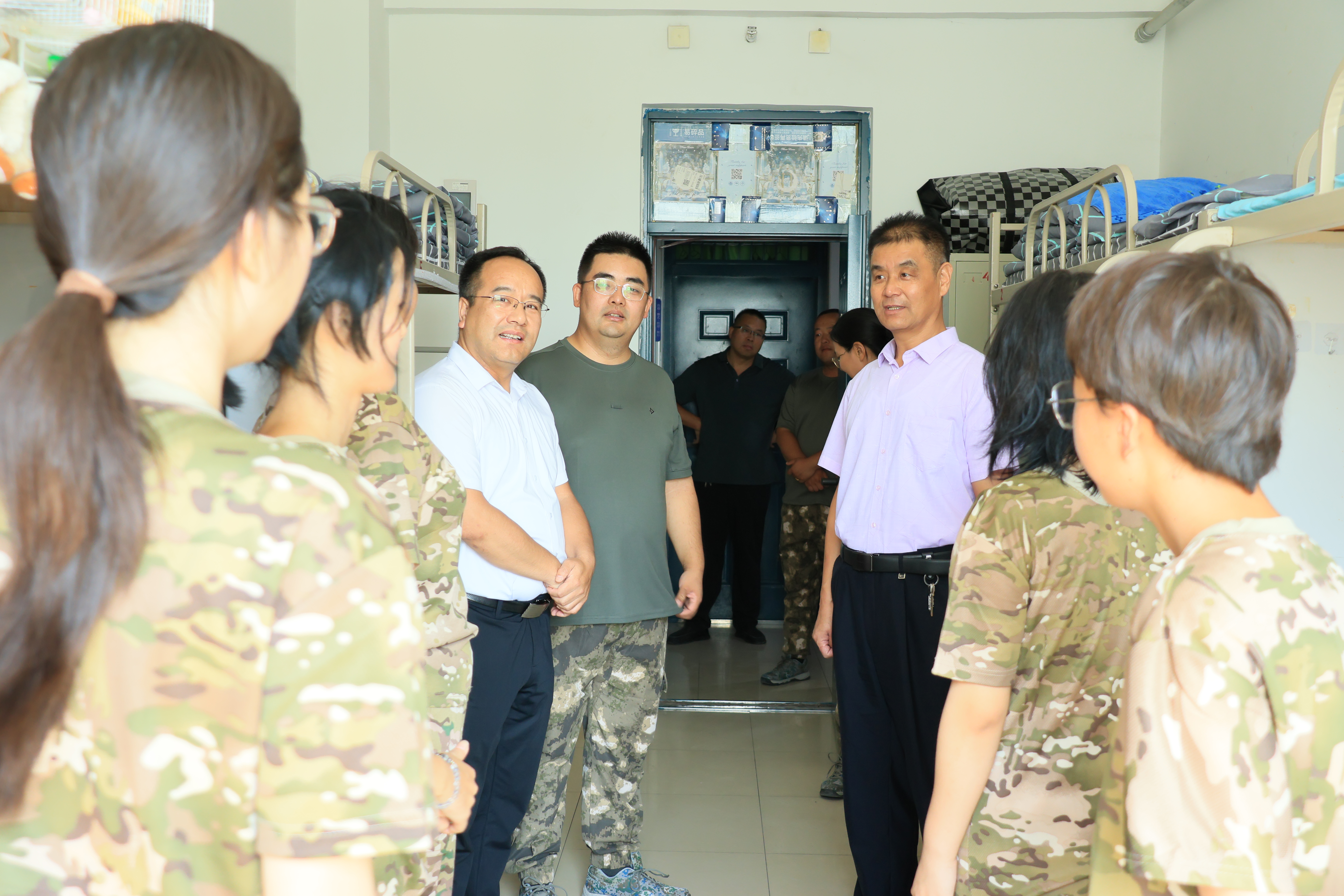走进新生宿舍,与新生们亲切交流,详细询问同学们来自哪里、入学后的感受以及大家的身体状况。一句句温暖的问候,让初来乍到的同学们感受到了家的温馨。