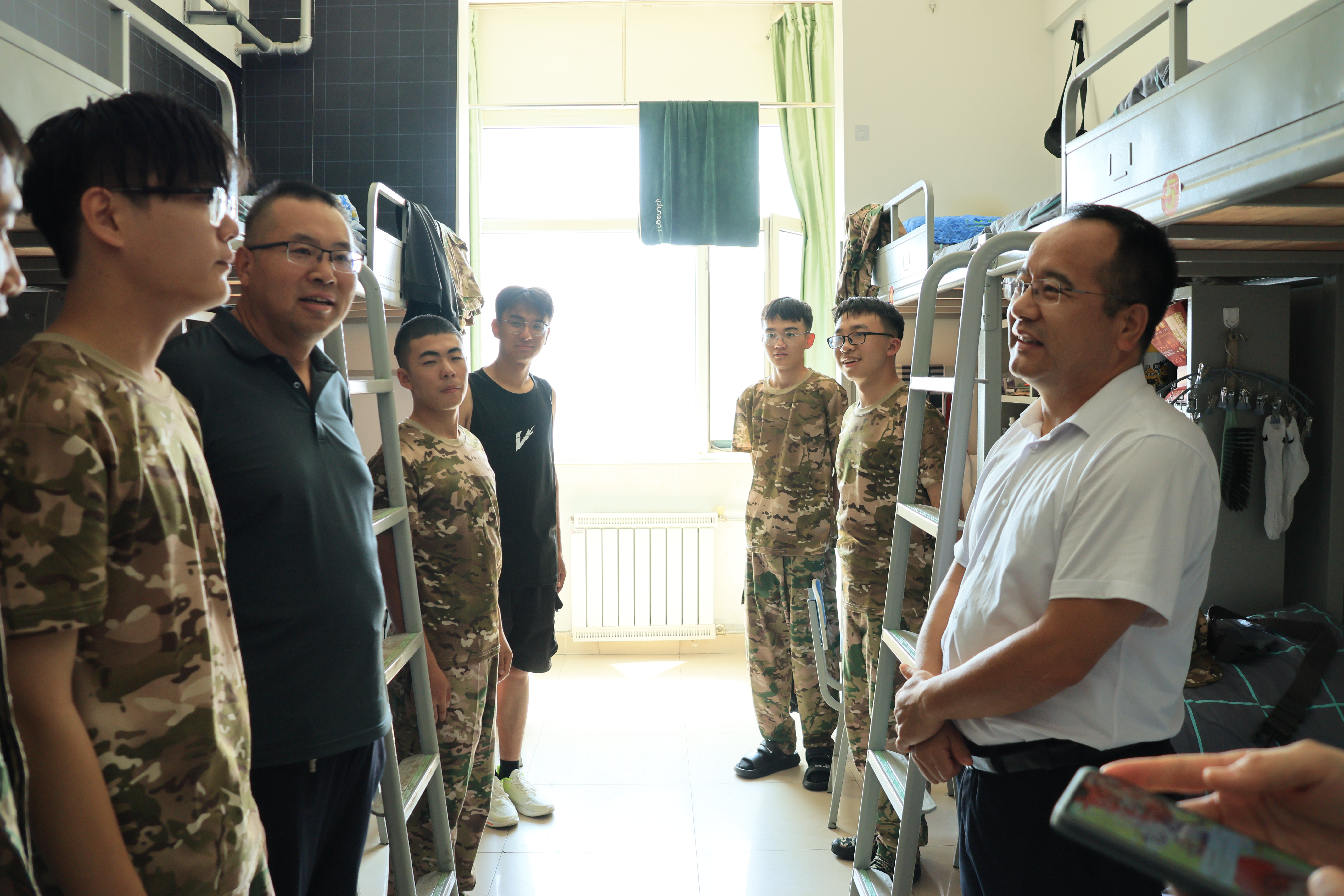 在与新生交流的过程中,老师们还鼓励同学们认真完成军训,在训练中进一步坚定理想信念,磨炼坚强意志,锻炼强健体魄,高质量完成军训任务,同时强调要维护民族团结,与各民族同学和睦相处,铸牢中华民族共同体意识。