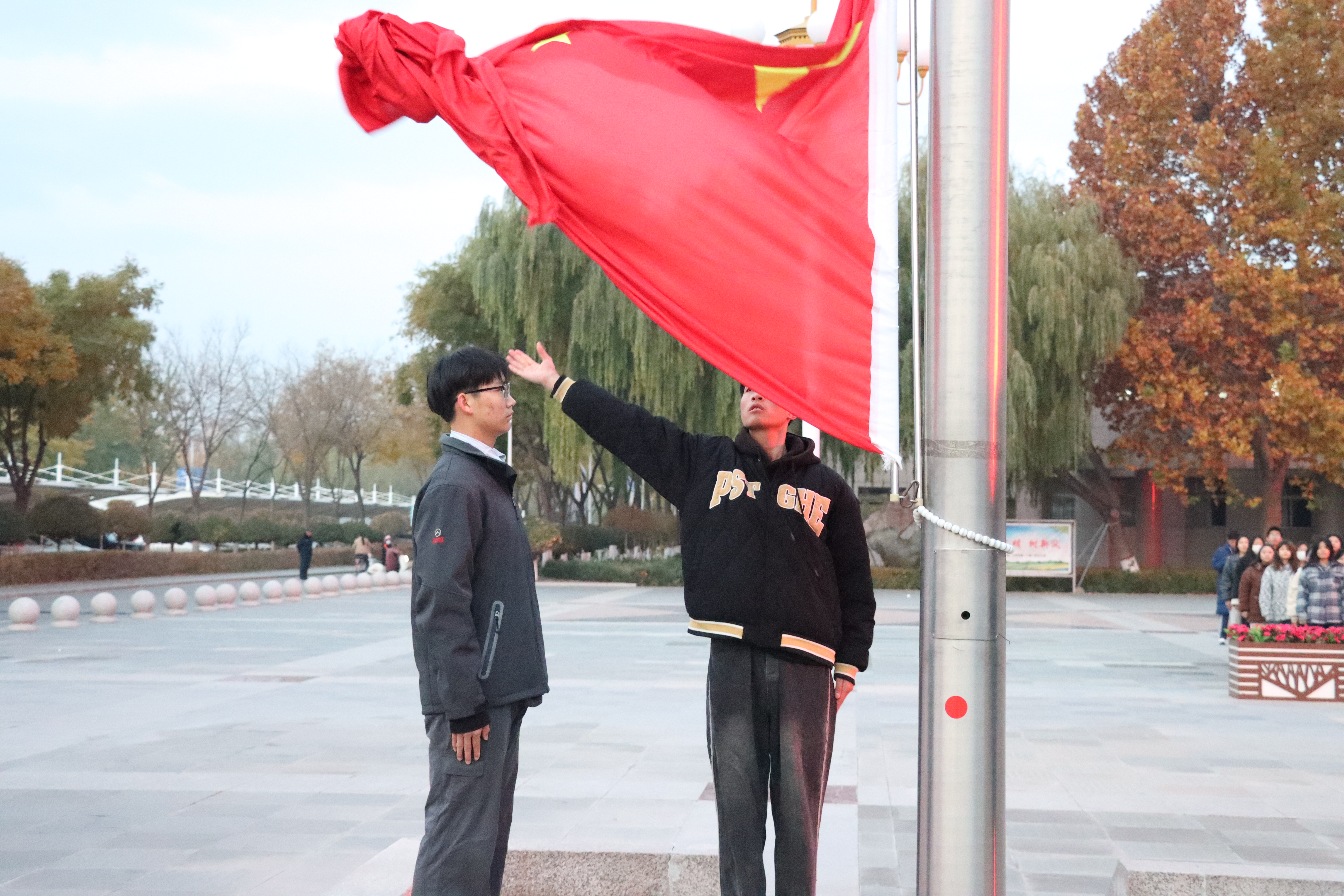 晨光微明,在国歌声中,五星红旗缓缓升起,迎风飘扬。在场师生庄严肃穆,齐唱国歌,对国旗行注目礼,共同表达了对伟大祖国的热爱与崇敬。