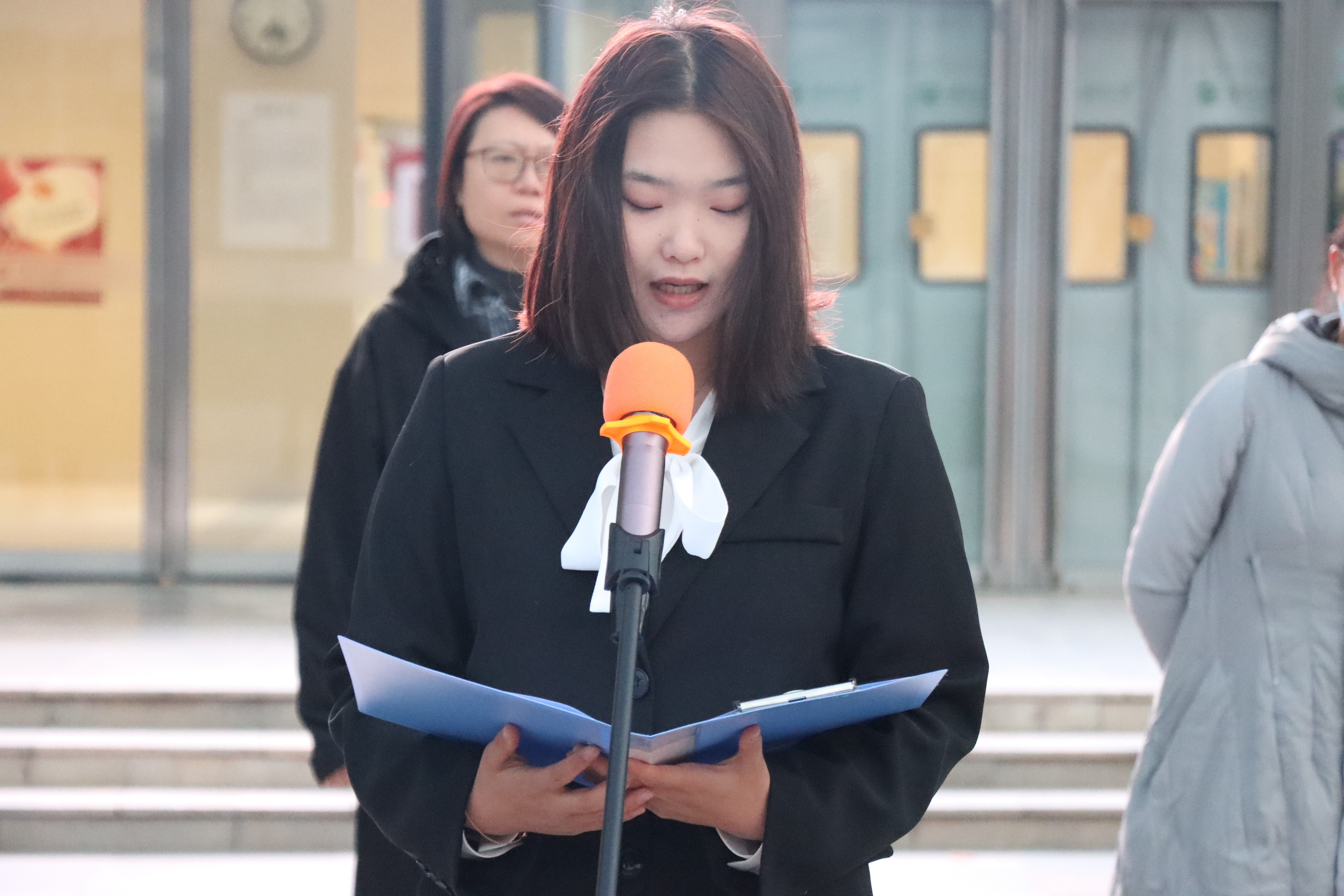 学生会主席团成员崔海华作为团学骨干代表发言,她以自己的学习和团学工作感受倡导同学们要勤学苦练,注重实践拓展,坚持改革创新,成为挺膺担当、锐意进取的勤学青年,并呼吁同学们要认真学习专业知识,锤炼专业技能,争做担当民族复兴大任的时代新人。