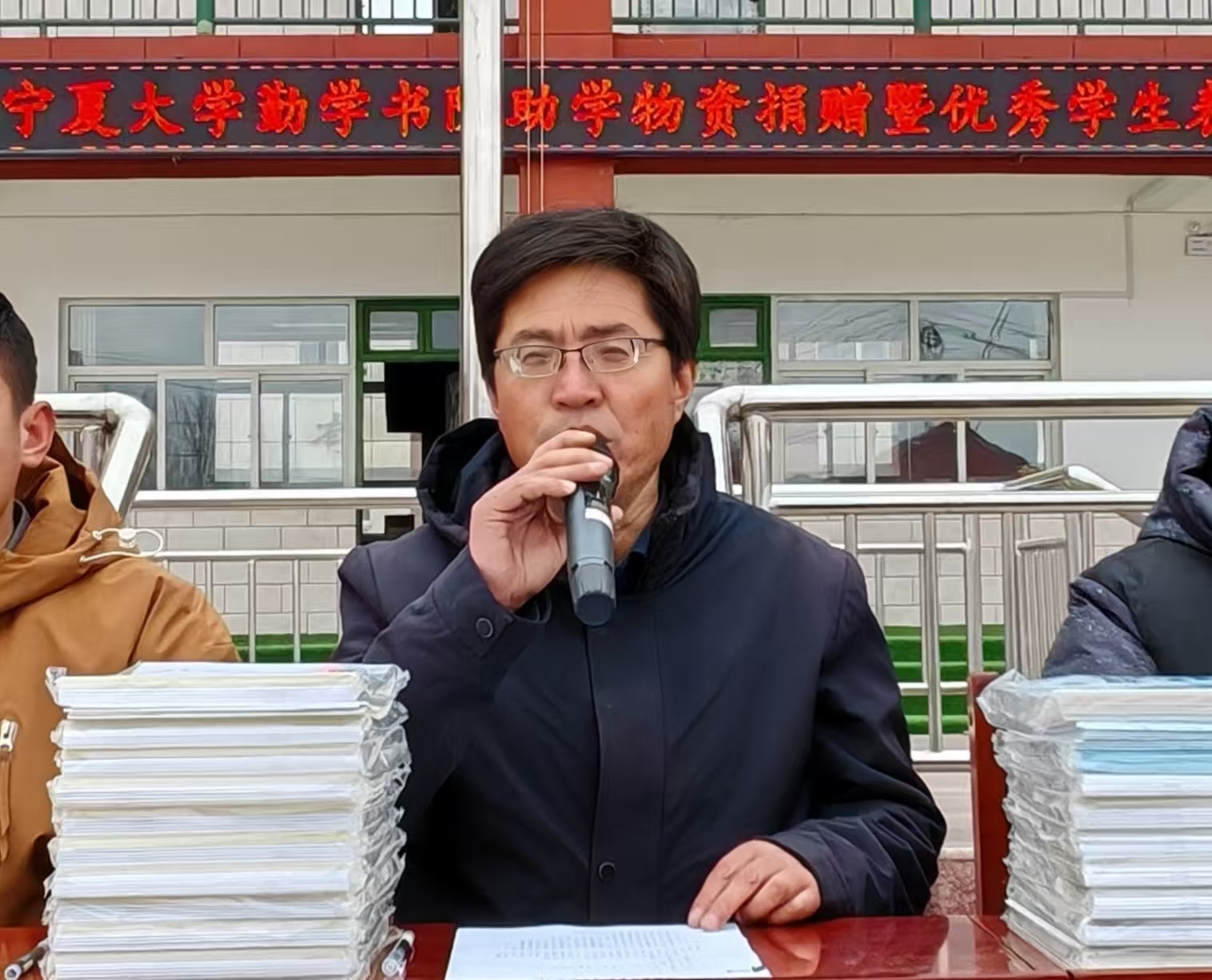 原州区炭山乡南坪小学校长马德贵对勤学书院组织的捐赠活动表示感谢,希望同学们能够珍惜这次机会,努力学习,用知识武装自己,做新时代的合格建设者和可靠接班人。