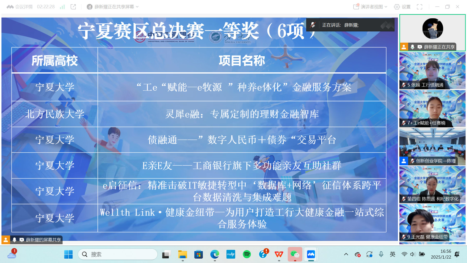 法学院研究生张越作为项目负责人参与的《“数字人民币+债券”交易平台债融通》项目成功入围全国百强名单。经济管理学院研究生任塞楠作为项目成员参与的《工E赋能--e牧源“种养e体化”金融服务方案》项目勇夺中西部赛区一等奖。本次获奖是宁夏高校参赛15年来首次荣获区域赛一等奖并入围全国总决赛,实现了宁夏在该赛事上的历史性突破!