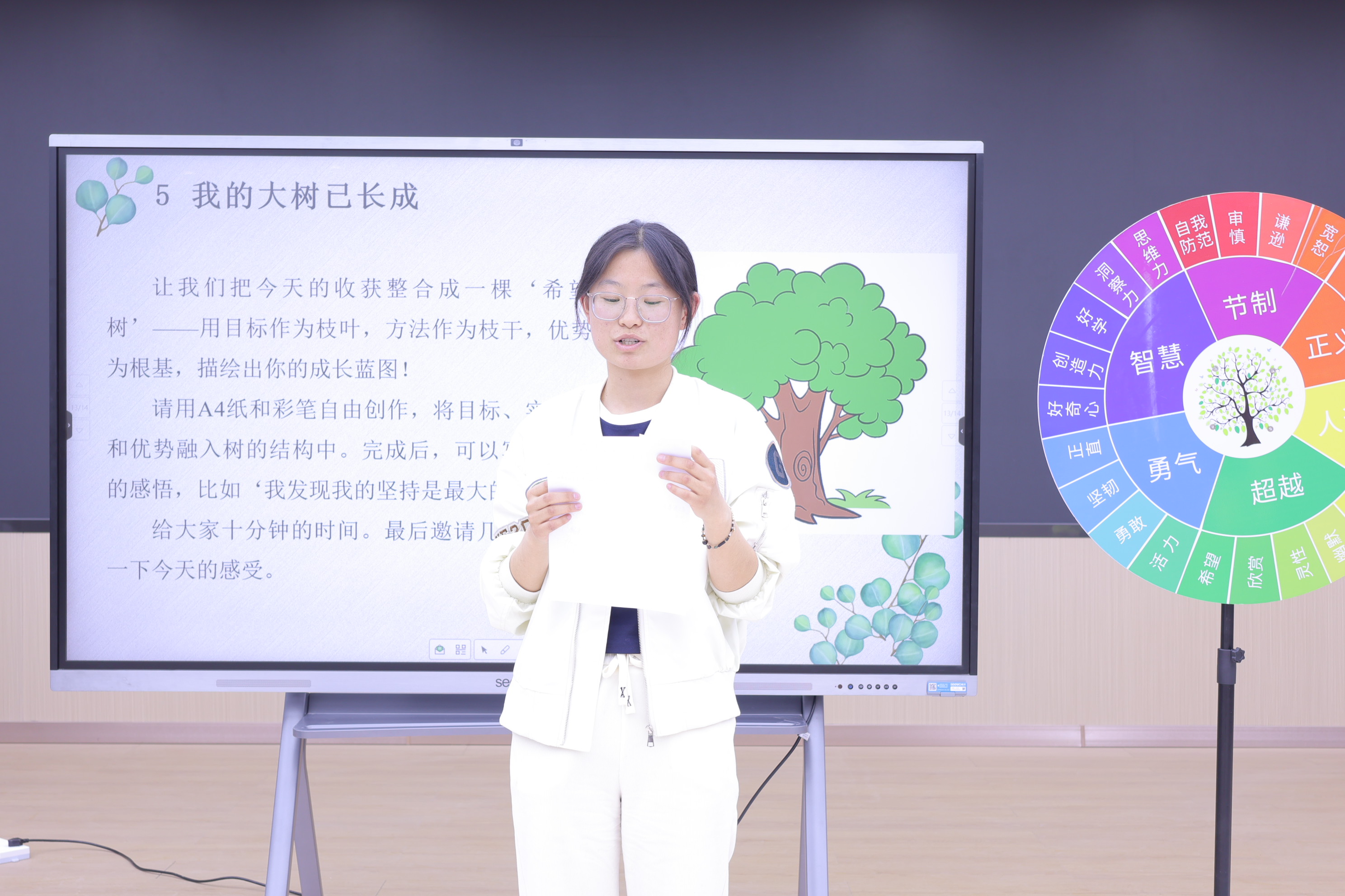 本单元中,同学们在春意中依据数字指令迅速抱团,现场气氛热烈欢快,被选中的同学大方分享自身优势,尽情展现自信风采。