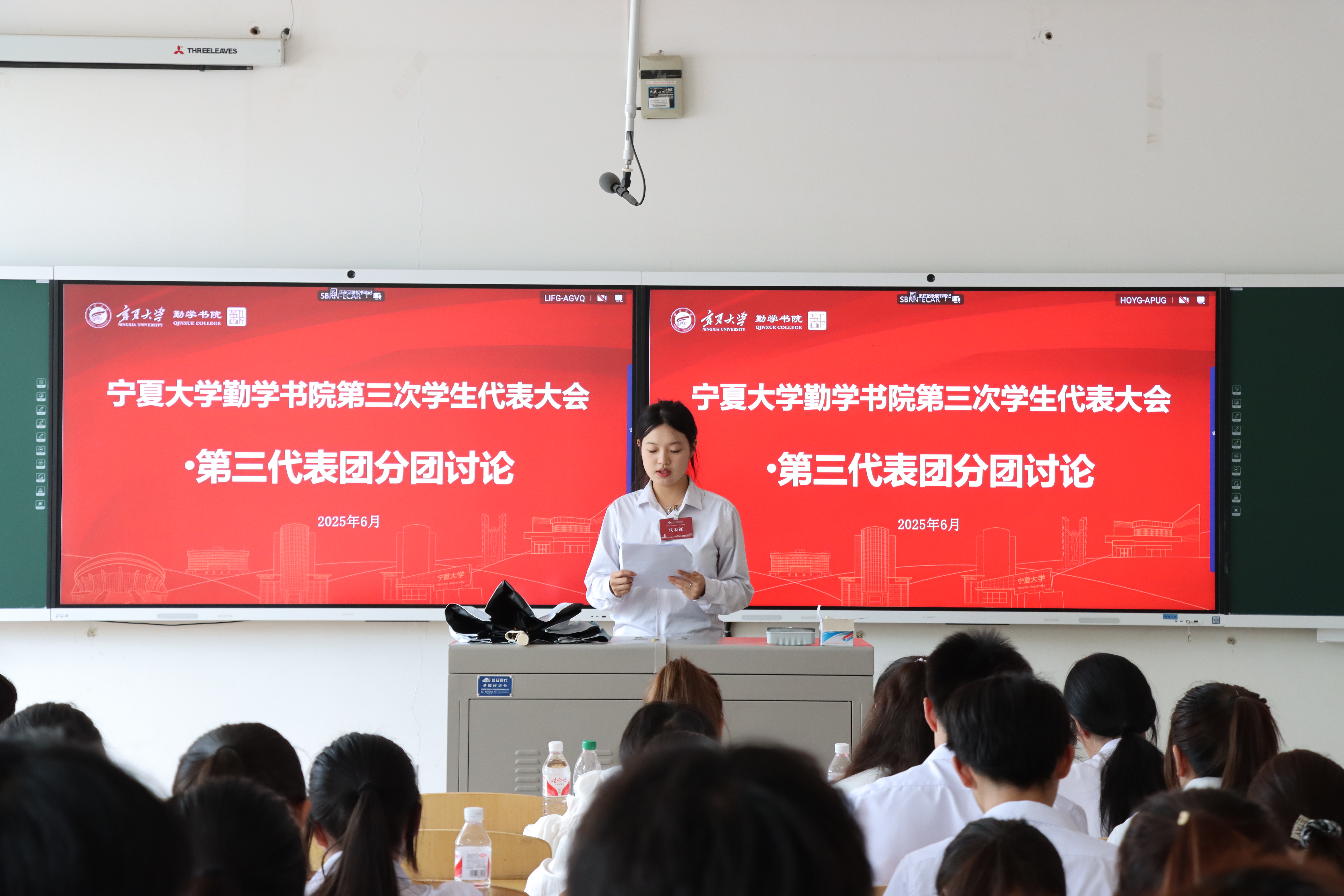 大会在宁夏大学校歌中落下帷幕。本次大会的顺利召开,标志着勤学书院学生工作迈入崭新阶段。新一届学生会、研究生会将以此次大会为起点,秉持“勤学,修德,善思,笃行”的院训精神,以更饱满的热情、更务实的作风、更创新的举措服务同学成长,助力书院发展。大会呼吁全体勤学学子,铭记习近平总书记对新时代青年的殷切期望,希望大家在勤奋学习中提升自身能力,在品德修养中磨砺高尚情操,在开拓创新中勇攀知识高峰,用青春的奋斗书写属于自己的精彩华章,为时代的发展贡献青春力量!