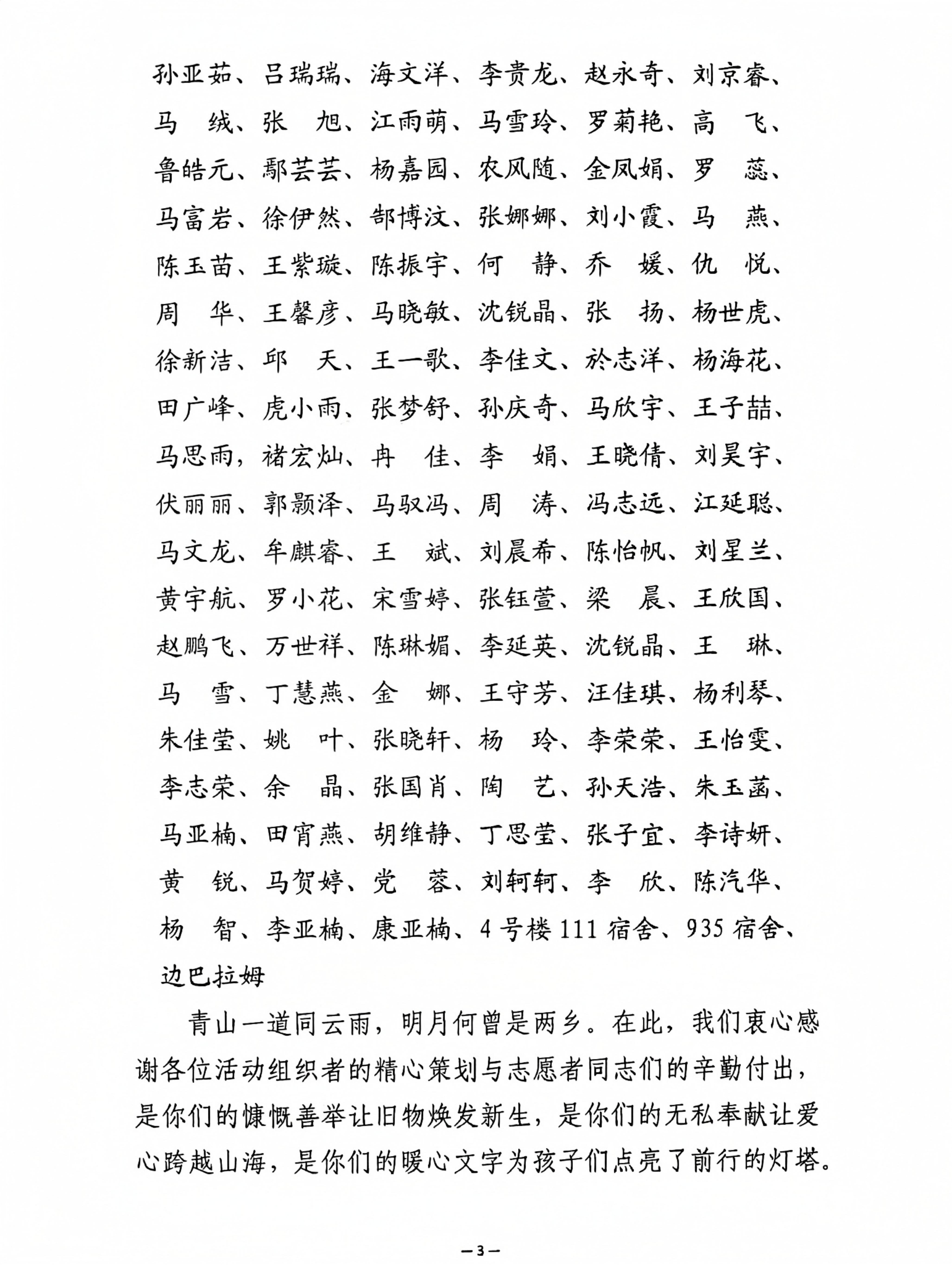 本次活动的顺利开展,离不开每一位参与者的无私奉献与辛勤付出。这些书信将成为孩子们成长道路上的珍贵财富,激励他们勇敢追梦、努力学习,用知识改变命运,未来为家乡的建设贡献自己的力量。
