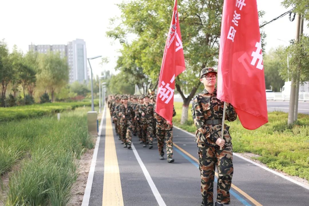 9月11日9时,军训团组织全团开展徒步行军拉练,四营学子从贺兰山校区西门门口出发,喊着口号、唱着军歌,步伐整齐、迈向目标。
