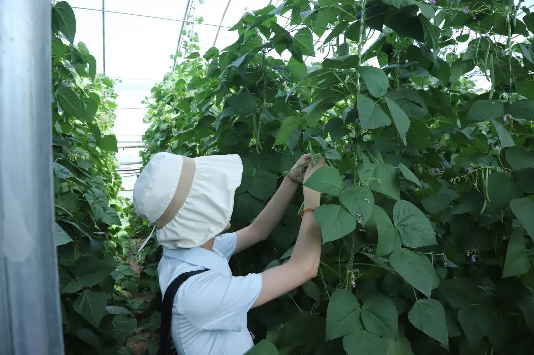 小小蔬菜基地,大大致富力量。同学们来到新水桥农业产业示范园区,映入眼帘的是一片嫩绿,焕发勃勃生机。“机器滴灌比人工洒水更均匀,苗子长得齐,品质更好。”负责人指着一片长势喜人的农作物说道。在绿意葳蕤的园区内,大家穿梭棚间,乐此不疲地劳作,阳光倾洒在他们朝气蓬勃的脸庞上,汗水滴落在他们脚下的土地上,感受自然熏陶,感受农民辛劳,感受劳动乐趣。负责人笑着说道:“为了让我们田地里的蔬菜更好的储存、运输、销售,我们村将继续扩大名特优新品种的种植面积,以规模化、标准化生产推动创建高效蔬菜品牌,积极引导农民发展特色果蔬设施农业,推进农业观光园和生态采摘园建设,成为助力乡村振兴的新亮点。”