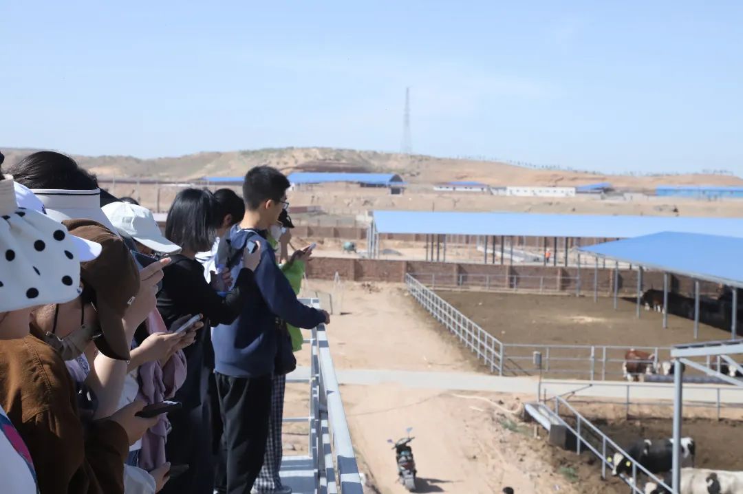 月牙湖边,黄金奶源推进乡村振兴。近年来,兴庆区畜牧业发展特色愈加明显,特别是奶牛养殖业“一枝独秀”,园区已成为助力当地移民脱贫和增收的主力军。王厂长介绍:“咱们的牛刚购进时也就是250到300公斤,现在已经达到了700到800公斤,之后还会持续扩大养殖规模,对于当地老百姓而言,行情和形势都十分不错。”同学们了解到,该地始终贯彻联农带农理念,在党支部的引领下成立发展农业合作社,吸引农民投资致富,落地硬件设施建设,并引进各类品种养殖、数字化管理等实用技术,将观光畜牧业与生态养殖有机结合,让“天然牧歌”传唱月牙湖畔,让“致富之道”越走越实、越走越远、越走越好,让农民腰包鼓起来、笑容漾起来、生活富起来。同学们在园区之行中,知晓了现代养殖业的发展状况和运营模式,看到了现代化养殖企业所具备的创造力和生产力,从而进一步体会到了国家乡村振兴战略的良苦用心。