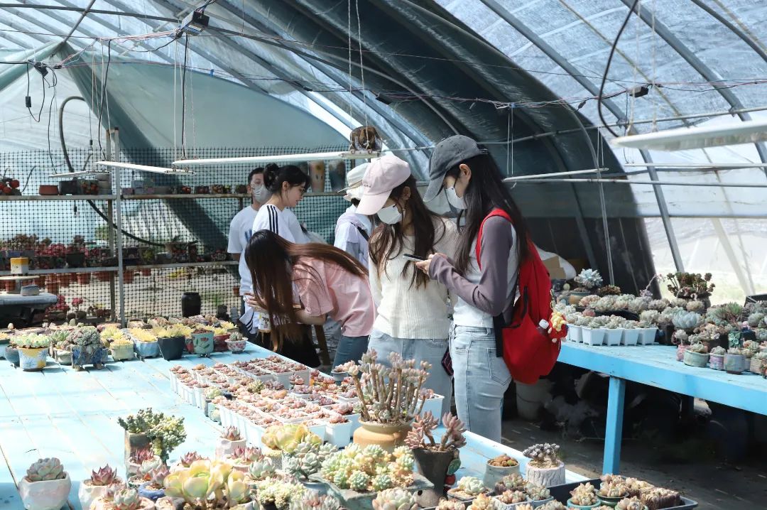 鲜花铺就金钱路,蝴蝶飞往百姓家。宁夏宏茂花卉种植基地是银川国际鲜花港的一家花卉企业,种植的蝴蝶兰多达30余个品种。相关负责人介绍到,银川市兴庆区花卉产业坚持政府引导、企业带动、农户参与的原则,以市场为导向、以农民增收为核心,进一步推进花卉产业规模化、高质量发展,产值现已破亿。绚丽多彩的植物乘直播营销之风,坐线下销售之船,分渠道流向市场,使同学们感之新颖,叹之可靠。花卉基地之旅,让同学们深入了解了花卉产业市场发展趋势,同时也对花卉产业的经济效益、社会效益与生态效益也有了崭新的认知与看法。