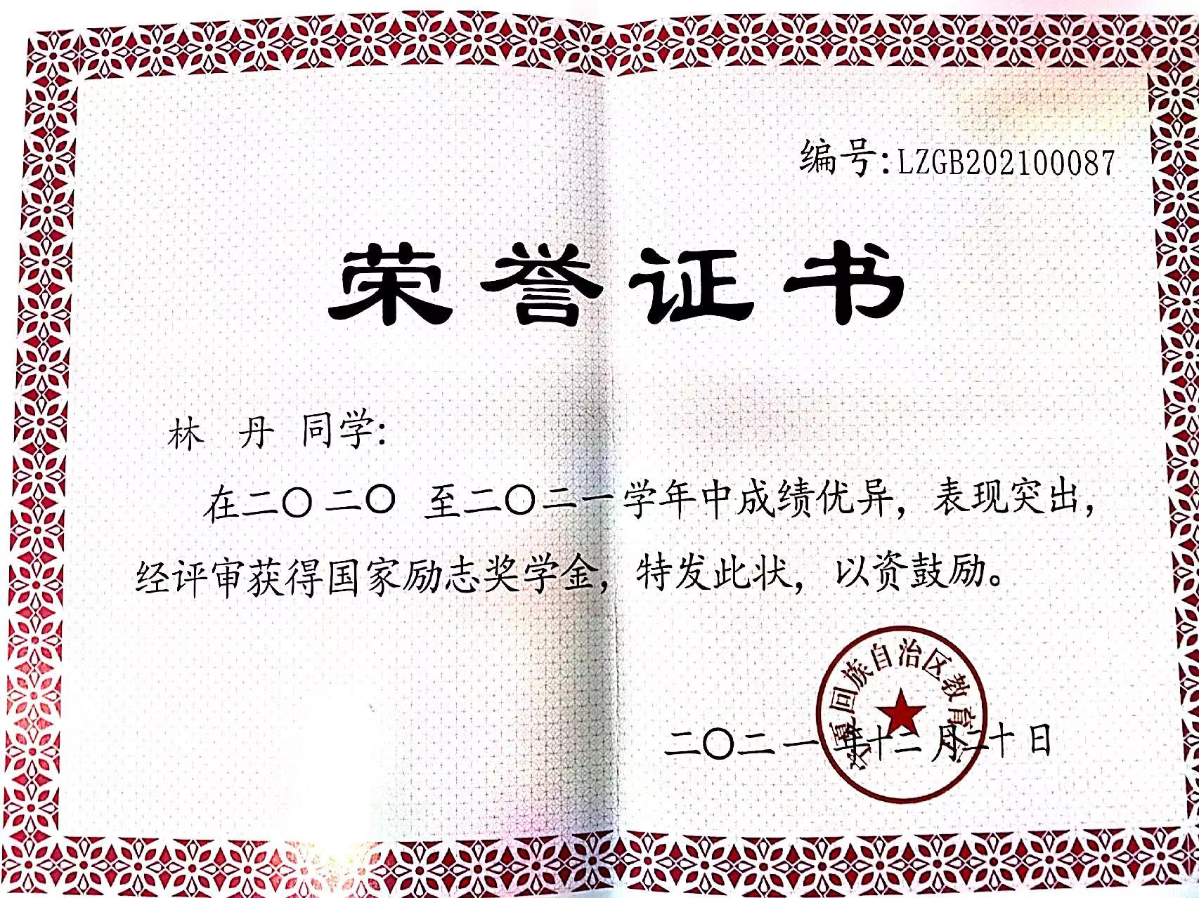 在校期间连续三年获得国家励志奖学金、一等综合奖学金、三好学生等荣誉,先后获得创新创业奖学金、学生党员标兵、优秀共青团员、团学工作先进个人等荣誉。主持国家级大学生创新项目1项,参与省级法学会委托课题(教师科研项目)1项,参与校级大学生创新项目3项,获得计算机软件著作权1项;多次以核心成员身份参加“互联网+”大学生创新创业大赛、“挑战杯”大学生课外学术科技作品竞赛,获国家级奖励1项、省部级奖励3项和校级奖励8项;发起省级重点暑期“三下乡”社会实践1项,深入宁夏一县两乡两镇开展法治宣传,先后被宁夏日报、宁夏新闻网、宁夏法治等官方媒体报道,并获区级优秀志愿者、优秀社会实践个人等称号;曾获校级禁毒辩论赛季军、校级模拟法庭竞赛一等奖等。
