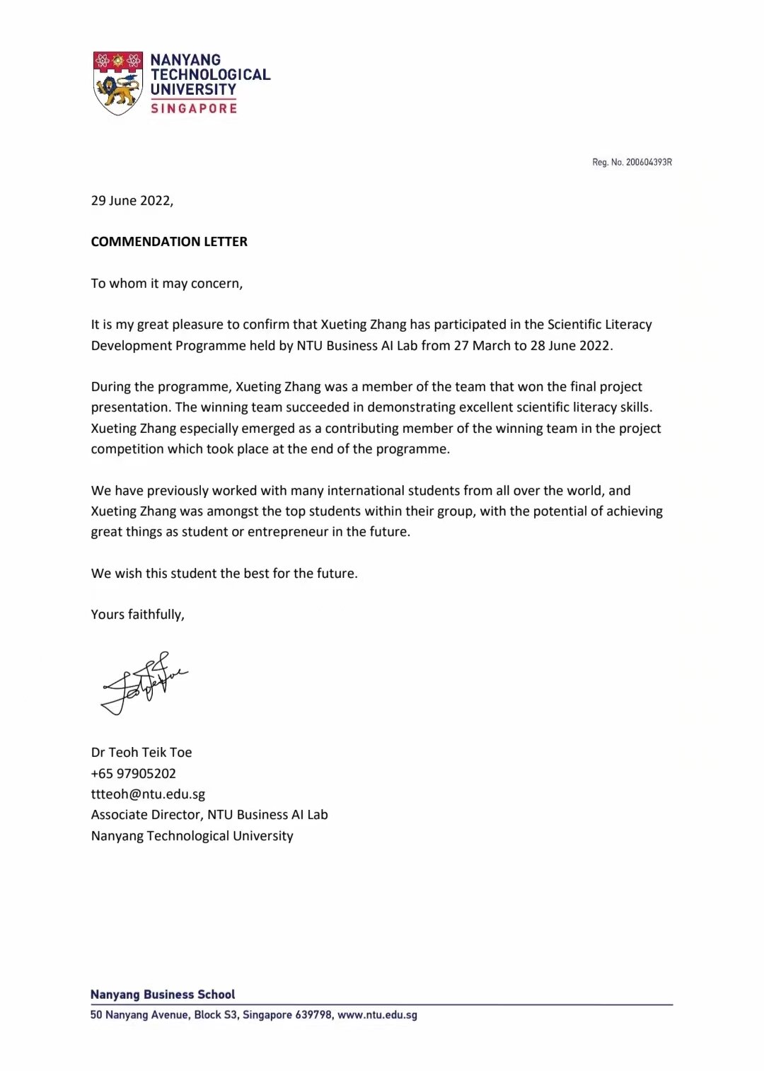 大学四年系统地学习了心理学专业课程,平均绩点达3.89,排名为1/34,并以602分和565分通过英语四六级,取得了普通话一级乙等、计算机二级、市场分析研究员、心理与行为分析研究员证书。同时,她顺利完成了两年法学辅修专业的学习,并参与新加坡南洋理工大学、美国加州州立理工大学等名校的访学项目。