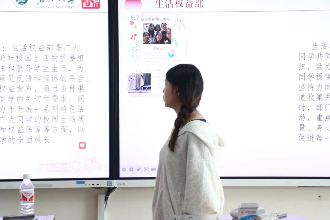 分享会上,勤学书院团委学生会的成员们详细介绍了部门简介、组织架构、工作职责、特色活动及纳新要求,鼓励新生在完成学业的同时,积极参与学生组织,收获成长,在书院团委学生会的大家庭里发光发热。