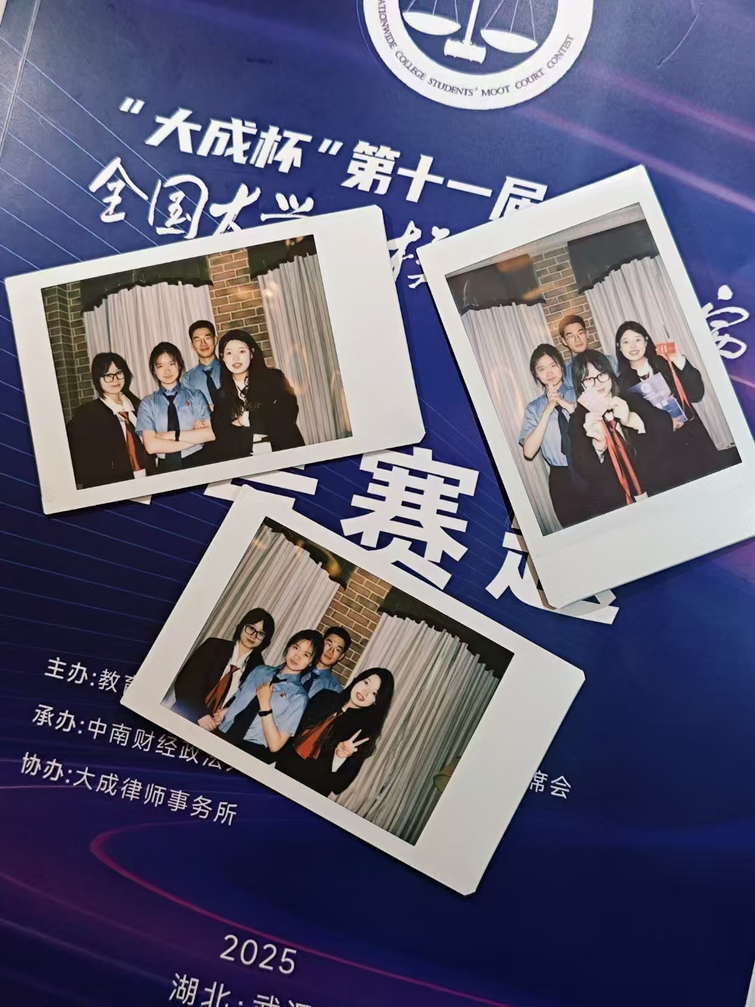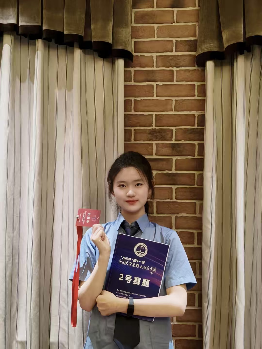 在赛场上,我们顶住压力,与全国强队过招,感受到法律人的责任与担当。这次参赛,是一次脱离课本的成长,是一场对逻辑、表达和临场应变的全面考验。更重要的是,我们在实践中体会到“真实法庭”的重量,也更加坚定了未来投身法治建设的信念。