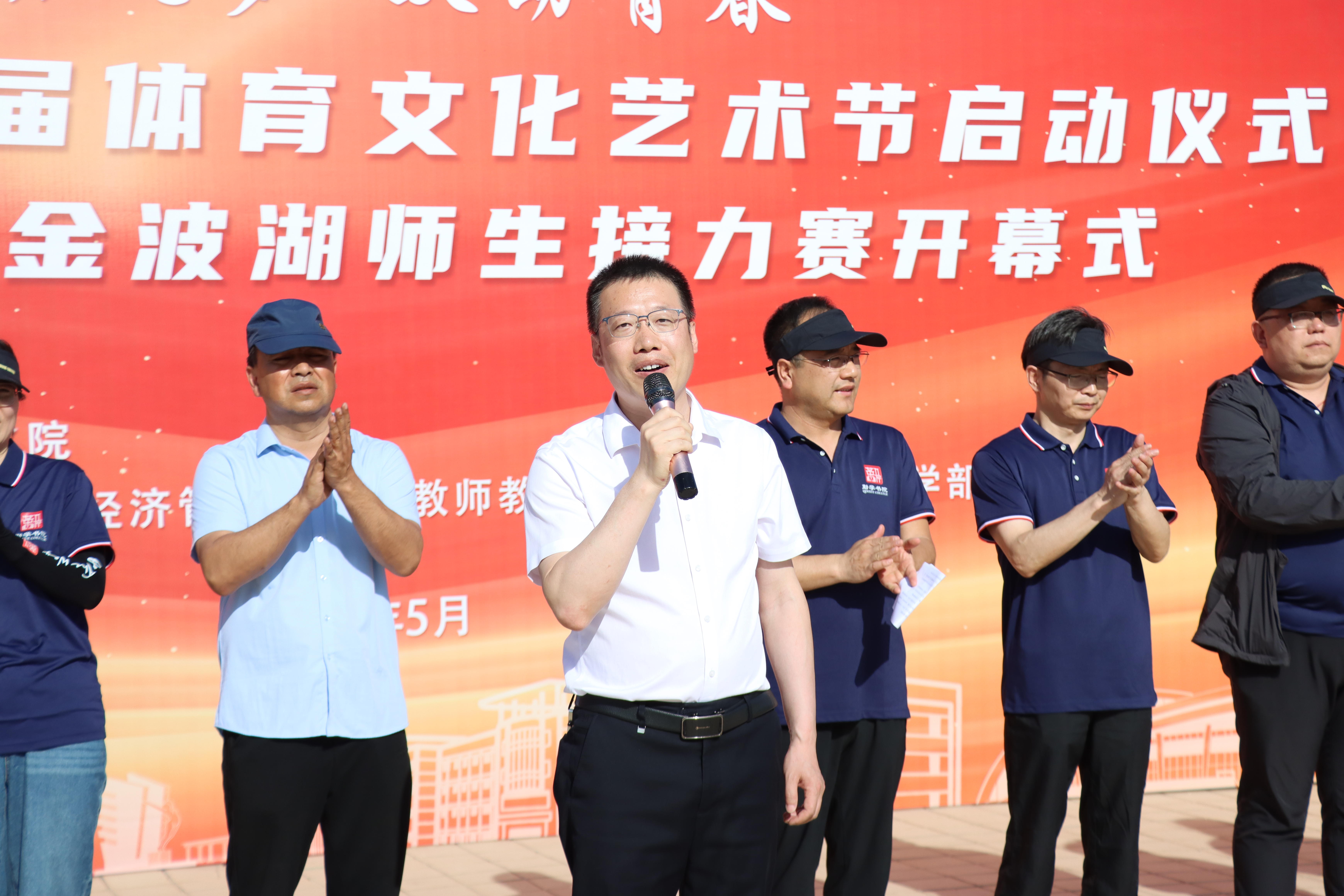 为深入学习宣传贯彻党的二十大精神,落实习近平总书记关于青年工作的重要思想,弘扬“团结奋进、敢于争先、永不言弃”的拼搏精神,普及“积极向上、坚强自信、热爱生活”的心理健康理念,团结引领广大青年学子以昂扬向上的姿态投身学校“双一流”建设。勤学书院于5月22日下午举办第一届体育文化艺术节启动仪式暨第一届环金波湖师生接力赛开幕式。