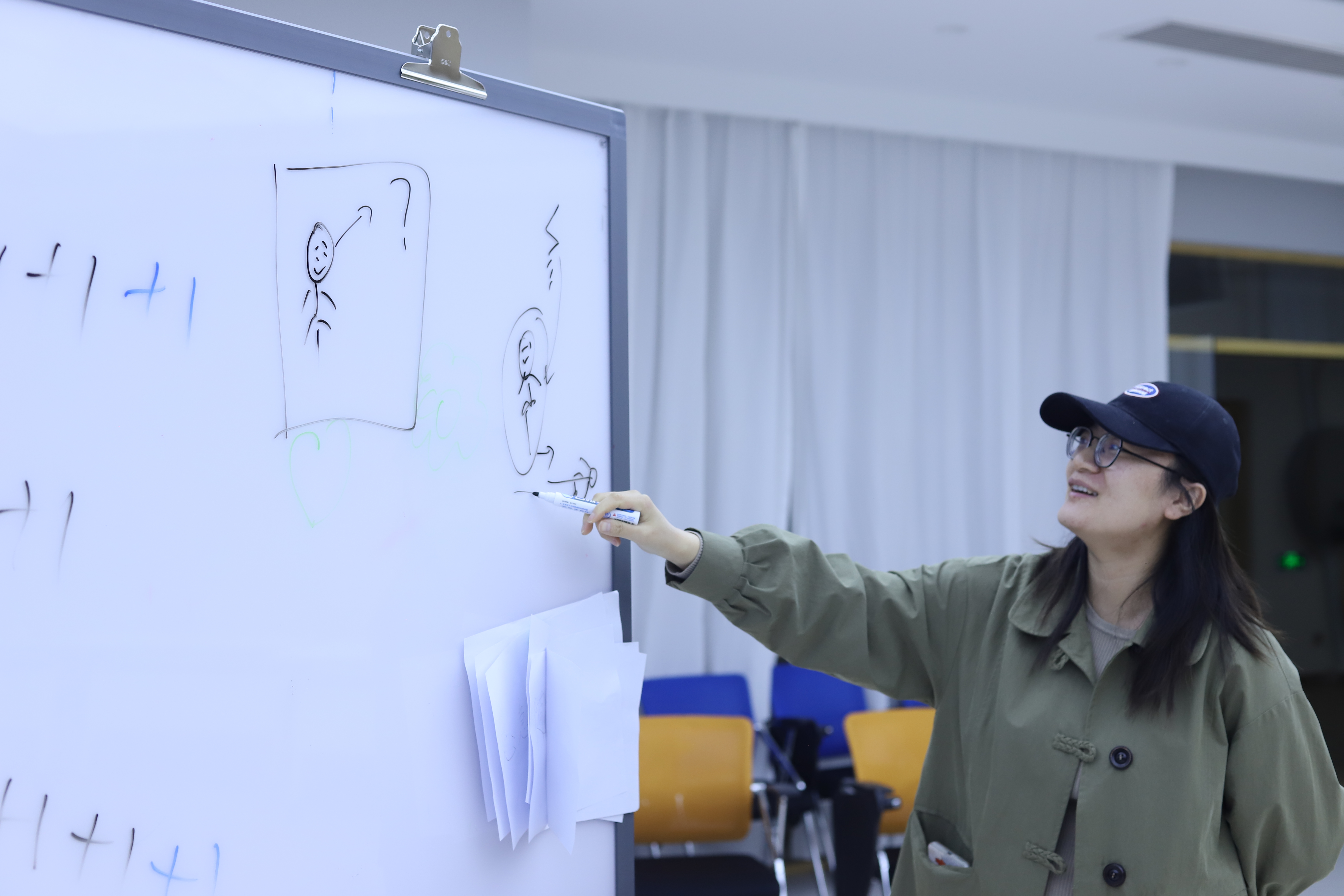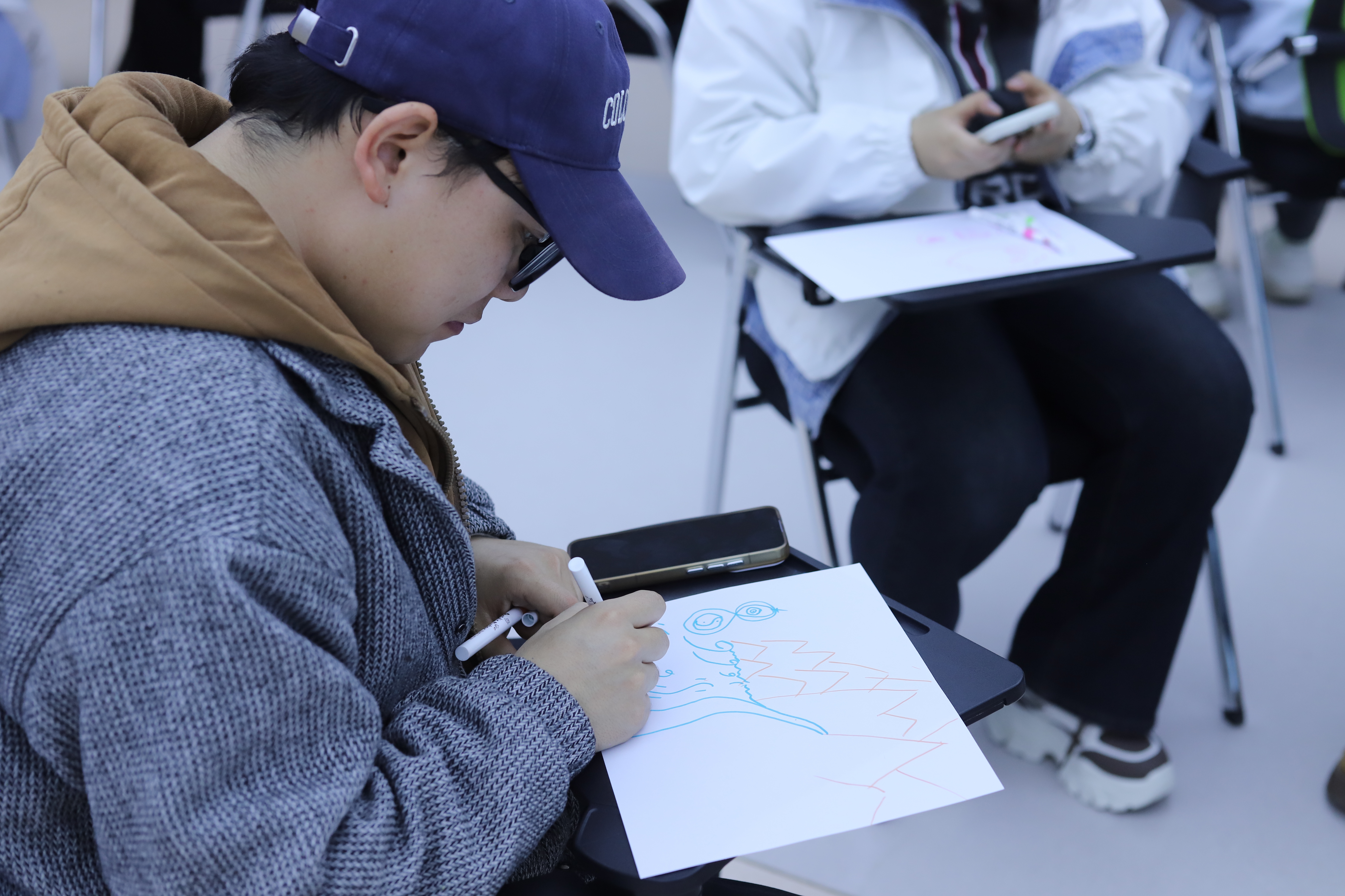 本单元中,为增强团队凝聚力,更形象地理解无形的情绪,一场“你画我猜”的心灵速写开始了。白板变成同学们的情感画布,抽象线条诉说千言万语,有同学描摹“压力”——缠绕的藤蔓、巨大的石块;有的同学画出“悲伤”——向下的嘴角、破碎的爱心……猜词者全神贯注,从画作的线条入手,结合自己的理解与感受,努力解读作者的内心世界。原来不用言语,笔尖也会泄露心事,涂鸦被精准猜中时,引起心灵的共鸣。
