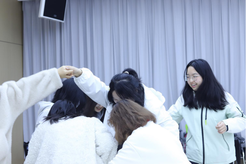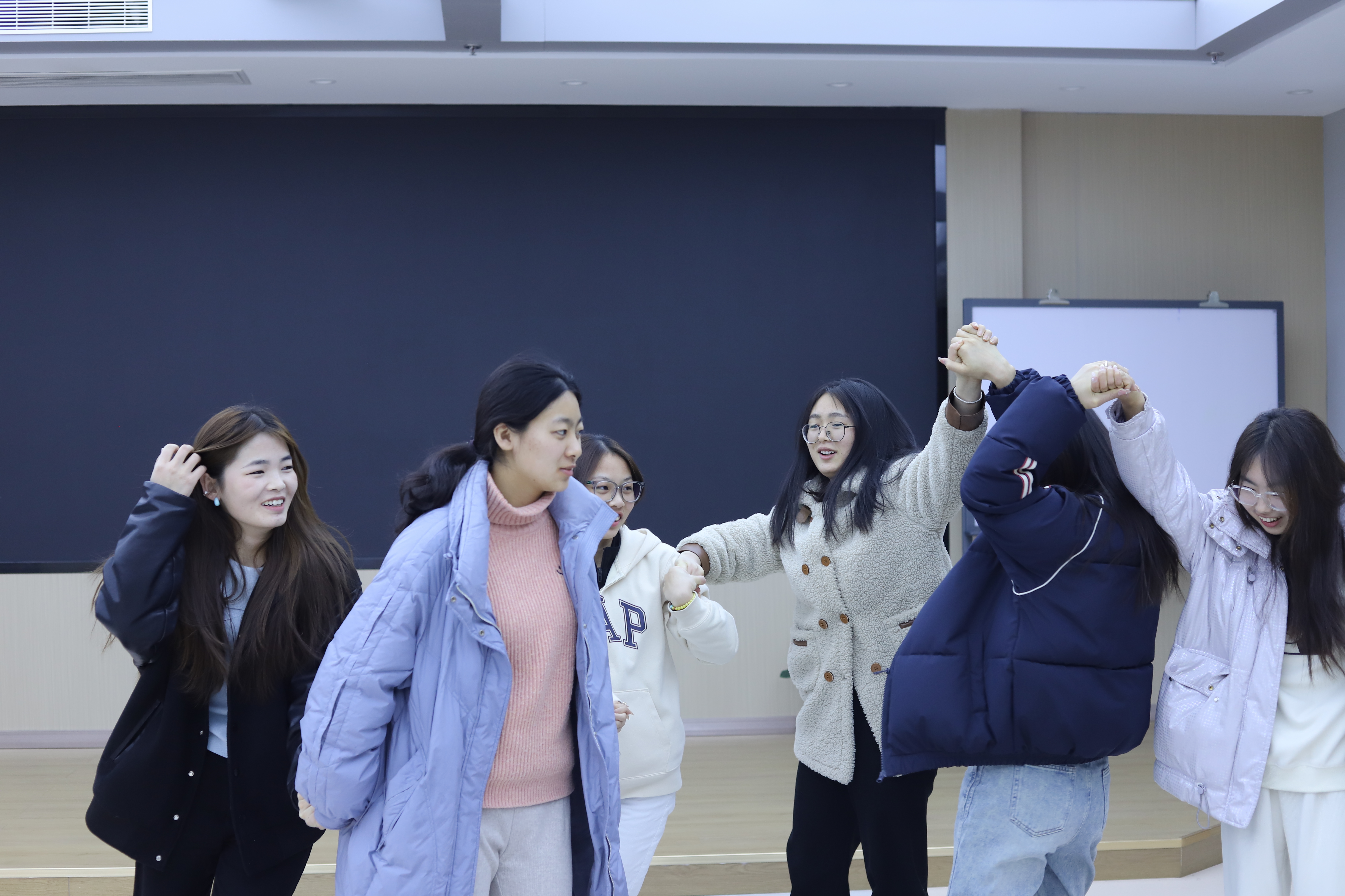 活动之初,一场“五角一元”破冰游戏迅速打破成员间的陌生与拘谨,增强了同学们对团体的期待。大家手拉手站成一排,双手高举形成通道,队员们一个接一个转圈从队友手下通道穿过,这是一场默契的考验,更是心灵的碰撞。一个简单的牵手足以让心墙消融于无形,此起彼伏的欢呼声里,原本生疏的隔阂已化作相视而笑的默契,温暖在掌心传递。