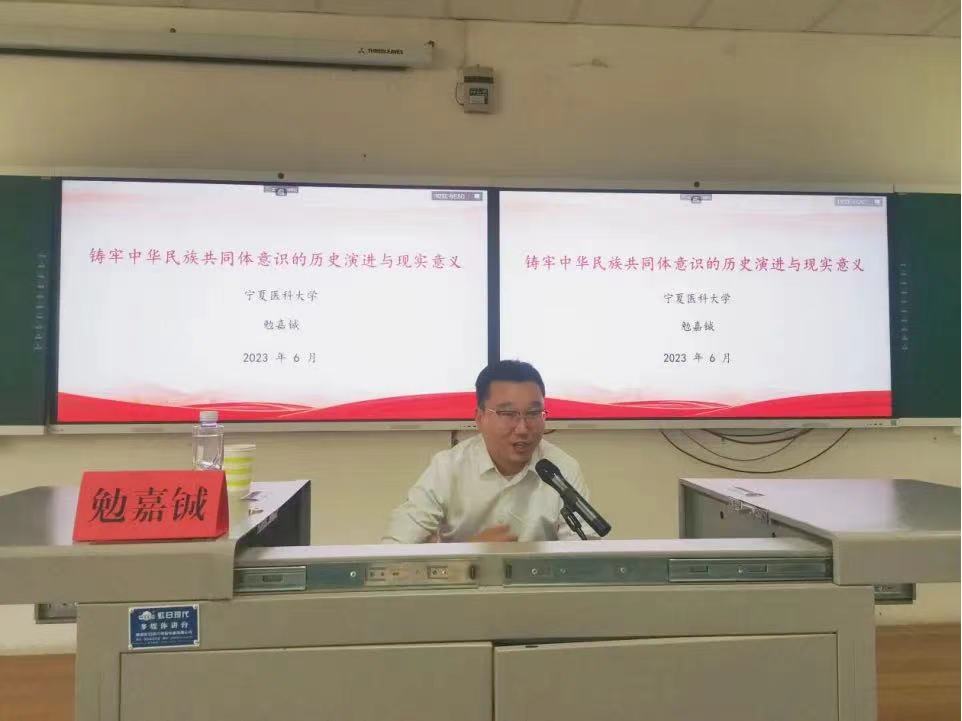 6月14日,自治区“传承党的百年光辉史基因,铸牢中华民族共同体意识”主题教育宣讲团成员、宁夏医科大学马克思主义学院副教授勉嘉铖受邀在贺兰山校区文荟楼130教室为书院学生党员、发展对象、积极分子作《铸牢中华民族共同体意识的历史演进与现实意义》主题教育专题辅导报告,勤学书院行社本科生与民哲研究生党支部书记王喆主持报告会。