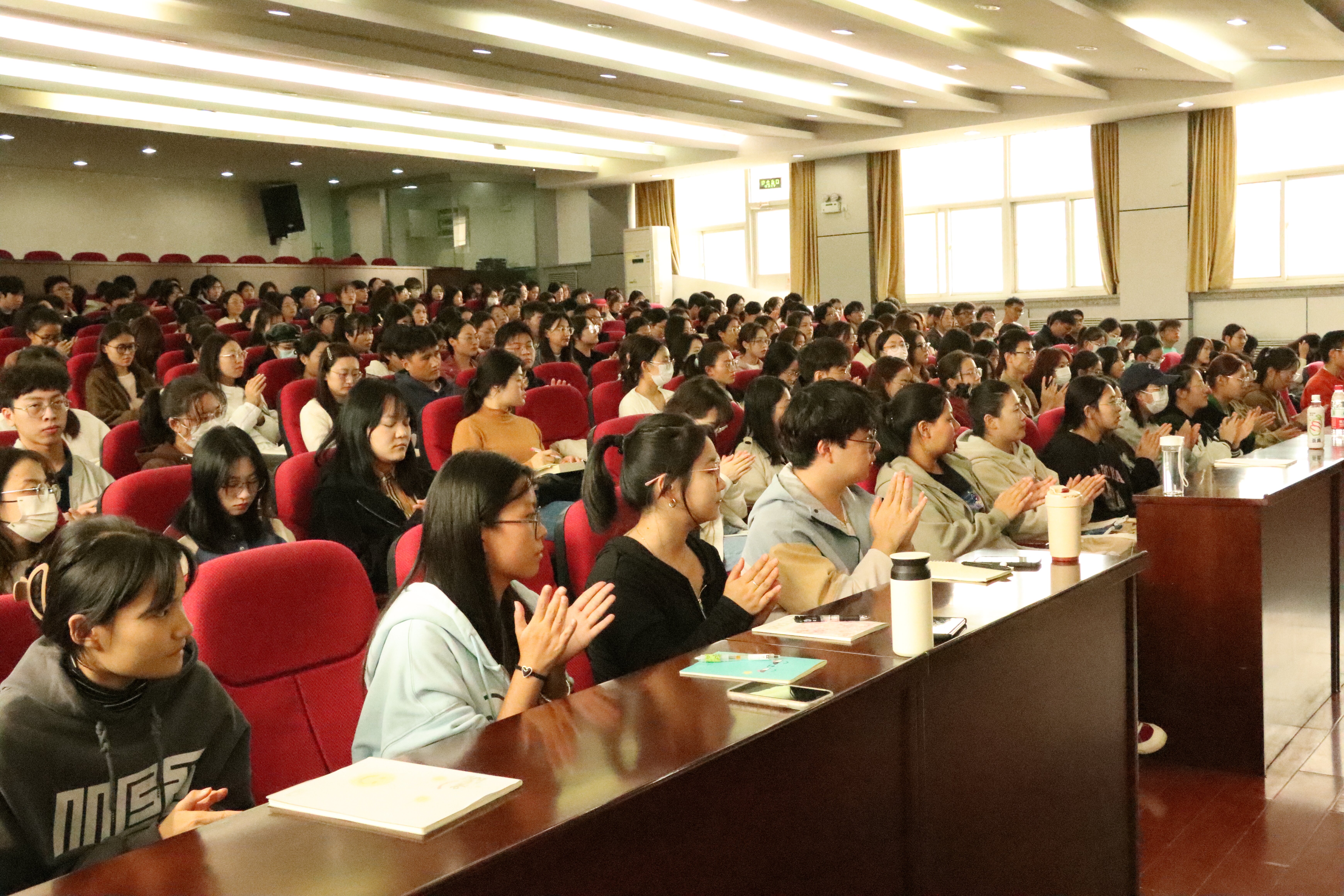 开班仪式结束后,马瑜以《奋进新时代的青年人》为主题开启党课第一讲。他列举了习近平总书记多次对青年的寄语内容,从新时代党的青年工作角度带领大家深入领会了党和国家对青年群体赋予的历史重任。同时结合我院学子学习生活的实际情况,鼓励同学们要把课堂学习与社会实践紧密结合起来,在“吃苦”中加强斗争历练,在斗争中经受“吃苦”考验,坚守正确价值导向,让青春在民族的伟大复兴中“淬火成钢”。