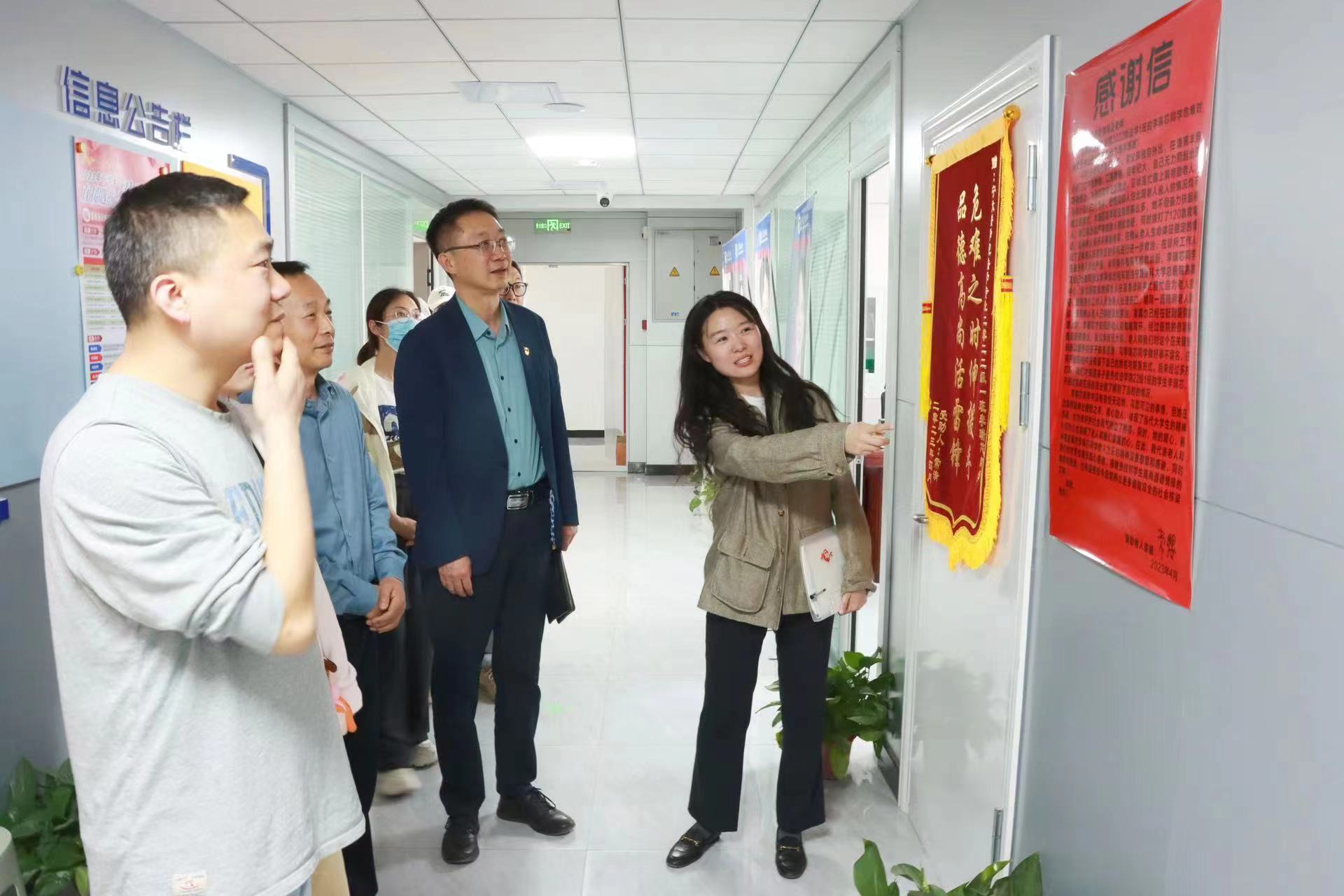 会后,在勤学书院党建思政中心辅导员姚硕介绍下,一行人参观了书院“一站式”学生社区阵地。