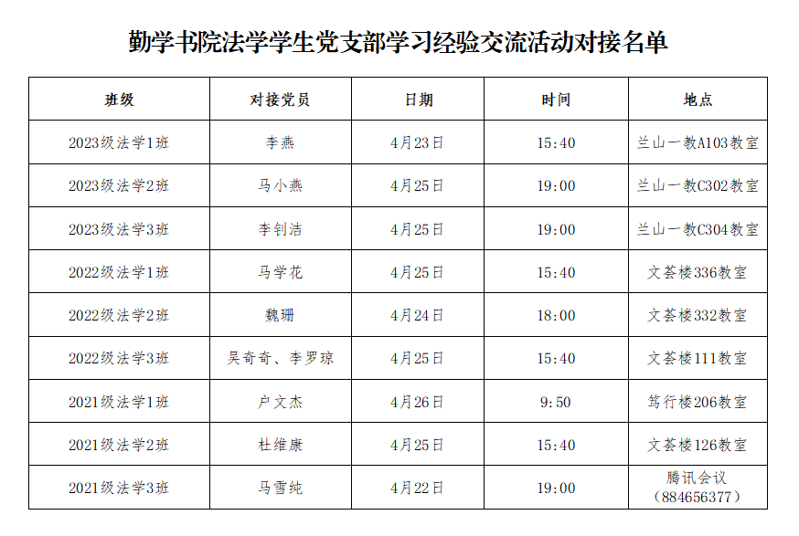 为充分发挥党员的模范带头作用,发挥研究生的学科优势,促进各层次、各年级学生交往交流。法学学生党支部于4月22日至26日组织开展了“党支部带团支部,研究生带本科生”学习经验交流活动,2021级、2022级、2023级全体法学专业本科生参加。