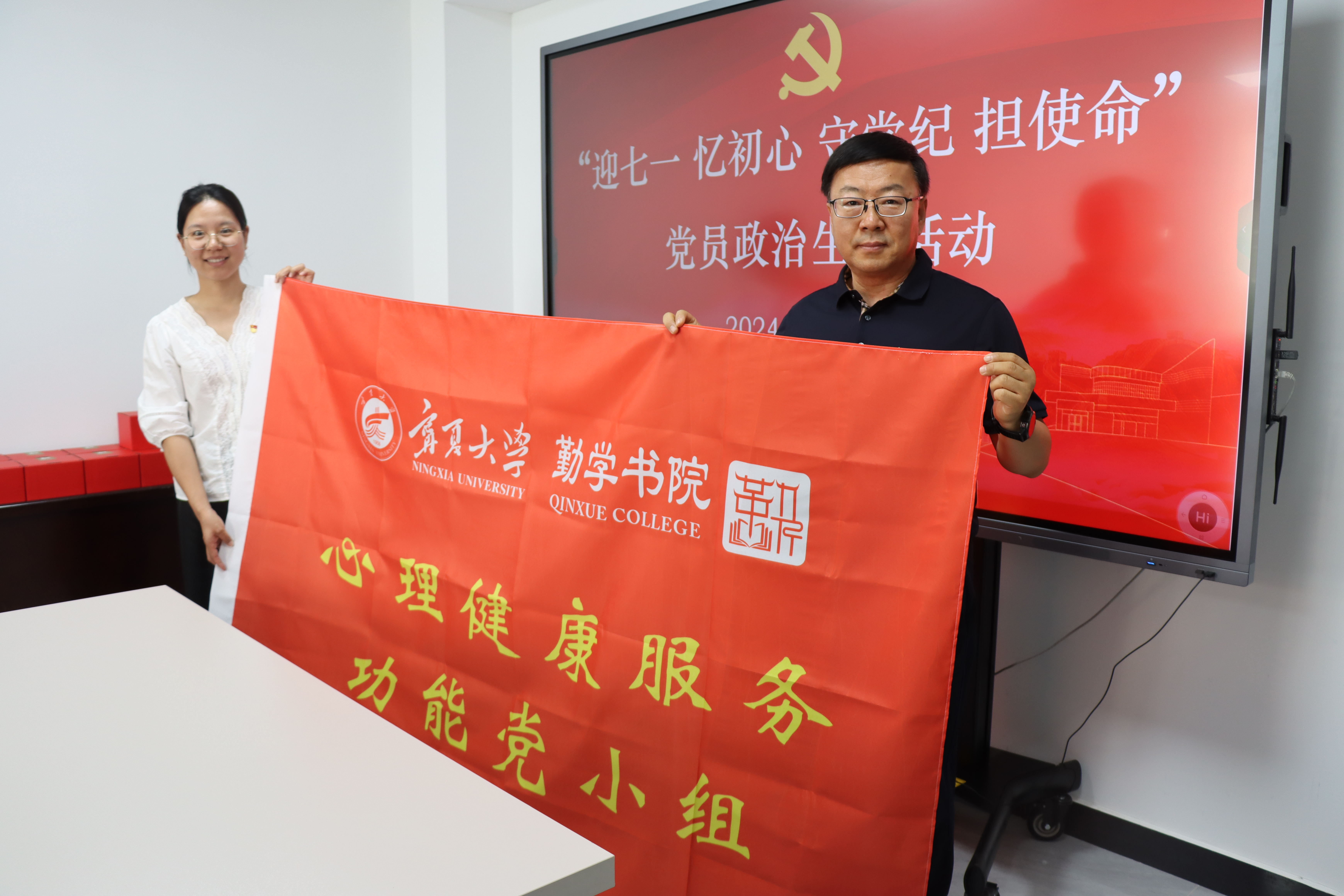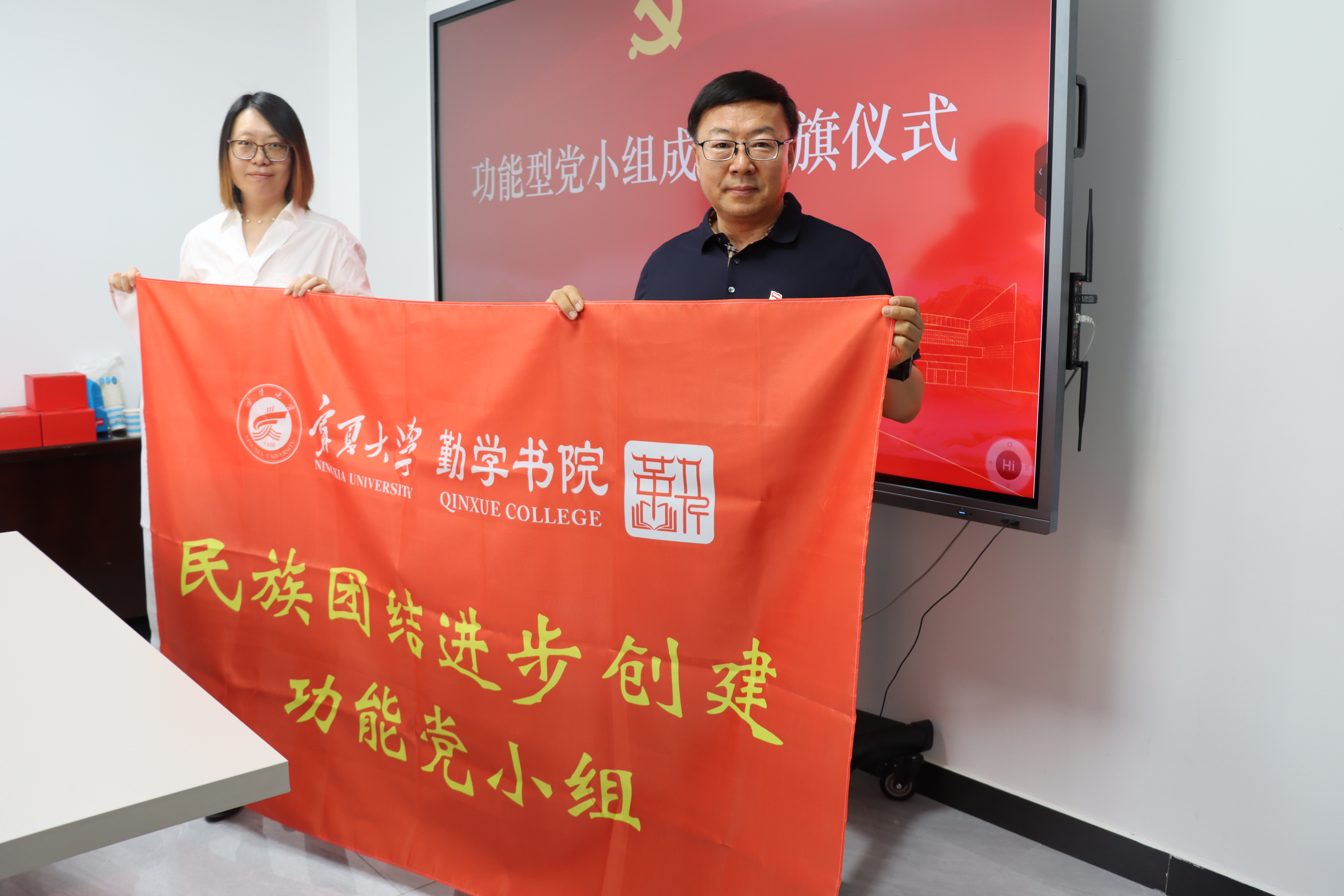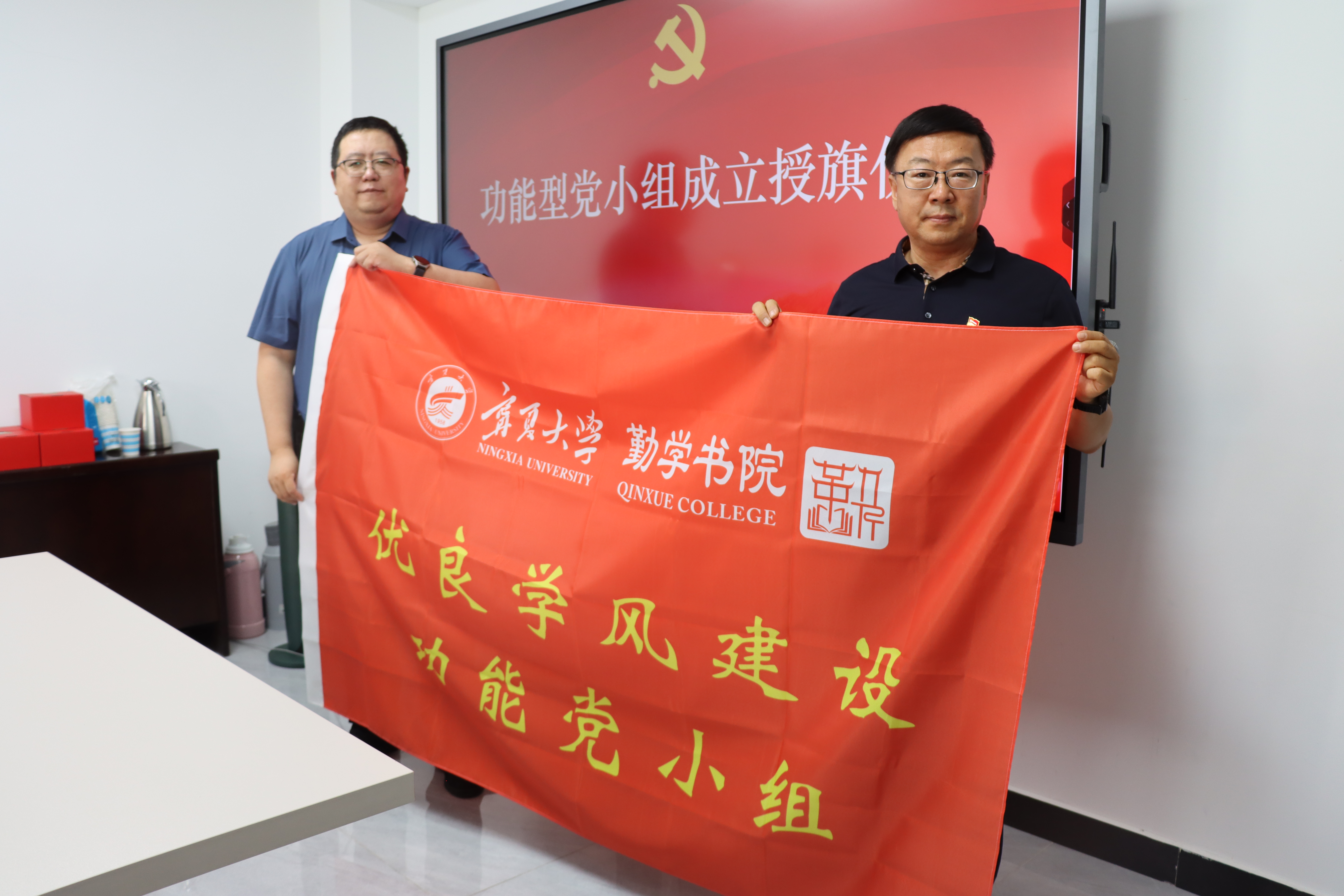 最后,黄河为勤学书院民族团结进步创建功能党小组、心理健康服务功能党小组和优良学风建设功能党小组授旗。