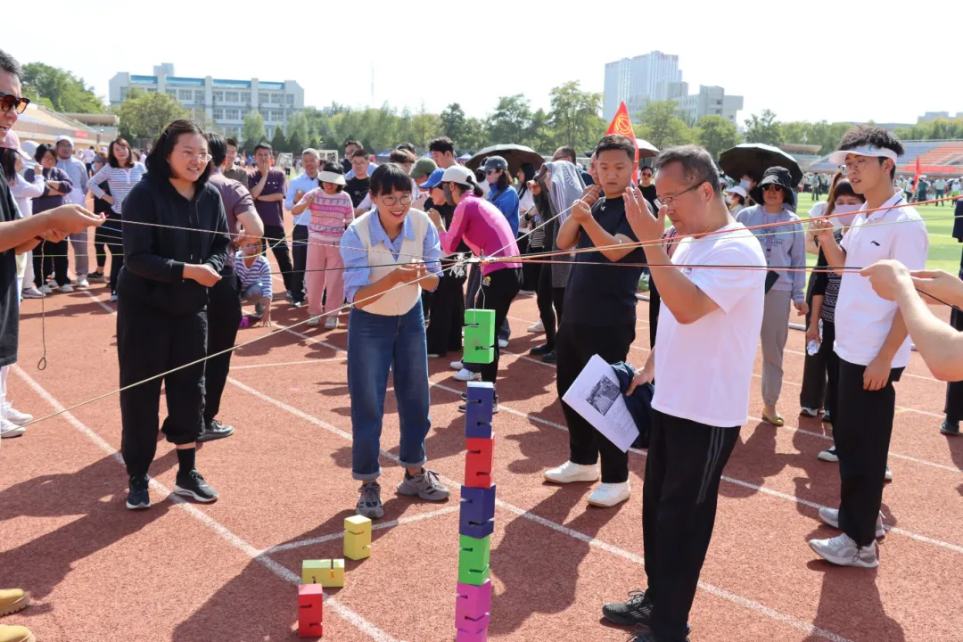 “趣味汉诺塔”层层堆叠,每一个圆环被飞速堆起,教职工们配合默契、井然有序。在有限的时间里完成了挑战。最后一项任务圆满落地,他们用自己的实际行动证明了书院、学部教师的实力与团结。