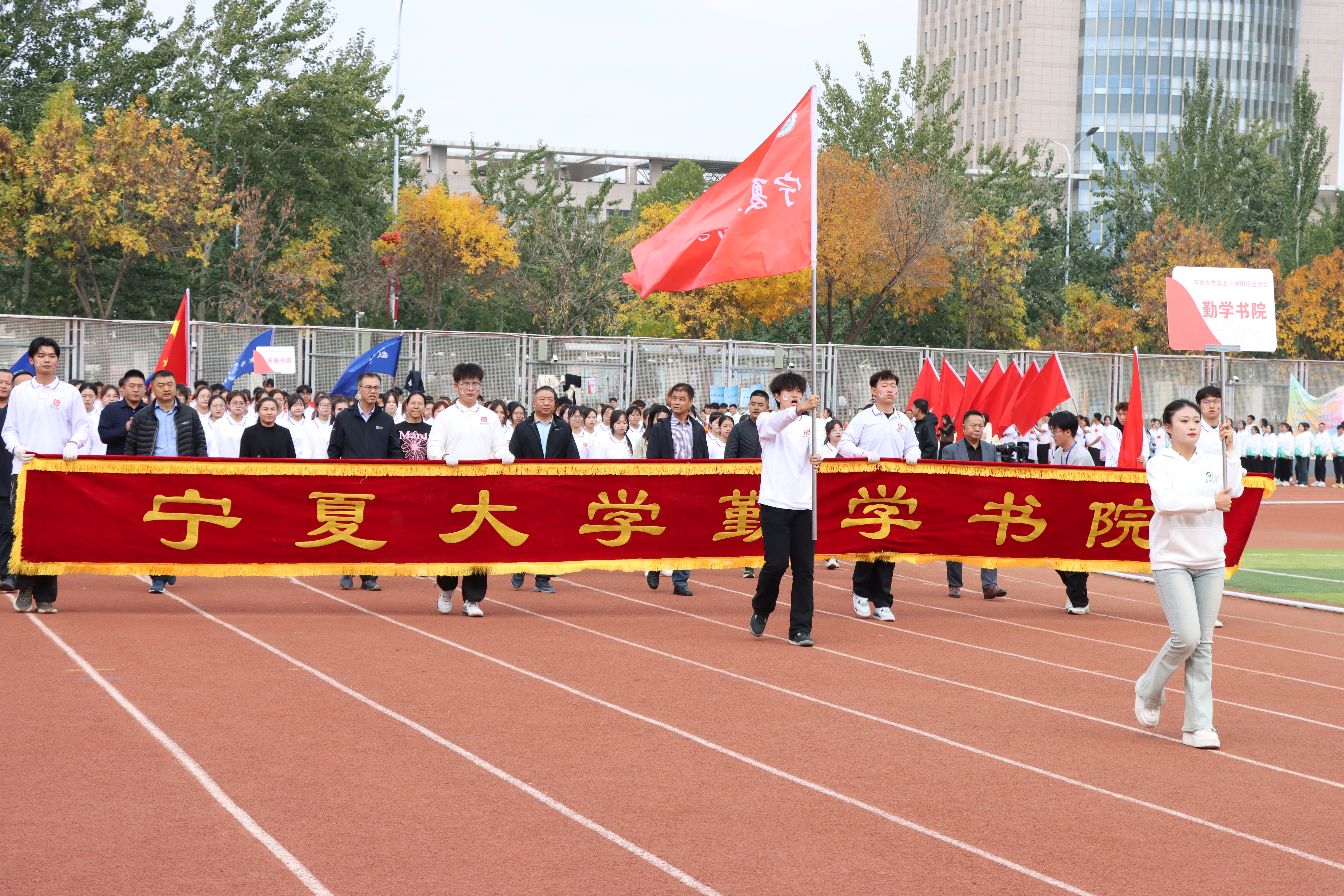 2024-10-12金风飒飒,天朗气清韶光正好,英才齐聚在这掌声雷动,万众欢腾的贺兰山下勤学健儿斗志昂扬,书写青春的模样开幕式上热情涨,健儿汇聚展风华步伐矫健气宇昂,舞动青春梦翱翔此刻,梦想与荣耀交织运动精神,在此绽放勤学学子志气昂,拼搏精神永不忘助跑背跃,乘势腾空预摆发力,爆发制胜今天,超越极限的鸟儿们于此起飞无论是跨杆争高,还是越沙求远都是对卓越的追求逆风展翅翱翔,少年神采飞扬孰可称雄长空,唯我勤学豪雄百米之路虽短坚强意志更坚只求战胜自我不畏挑战极限风举雷动,健步如飞发令枪响,全力追光今日虎贲在何方?且看勤学意飞扬!茫茫长路八百米,砺精奋勇向前行蓄势起跑征途开,心怀壮志行万里脚步稳健,步步踏实信念坚定,挥汗如雨身虽疲惫,心中无畏无怨无悔的拼搏过后你们必将抵达奇迹的终点铅球重,手心轻力拔山河气盖世,铅球一掷定乾坤汗水洒,肌肉绷铅球在握意称雄,力道释放似箭奔赛道如织梦初醒,千五百米试英豪汗水洒落成珠串,脚步坚定似浪潮呼吸均匀心不乱,意志如钢志未摇一圈又一圈轮回,速度与耐力交织终点线前冲刺急,胜利在望心飞扬观众席上掌声起,为健儿们加油忙赛道空余尘未散,彩旗轻卷暮云边汗水浇开胜利花,掌声响起梦初圆拼搏精神今犹在,团结力量永流传今朝收尾情更坚,明日再战新征