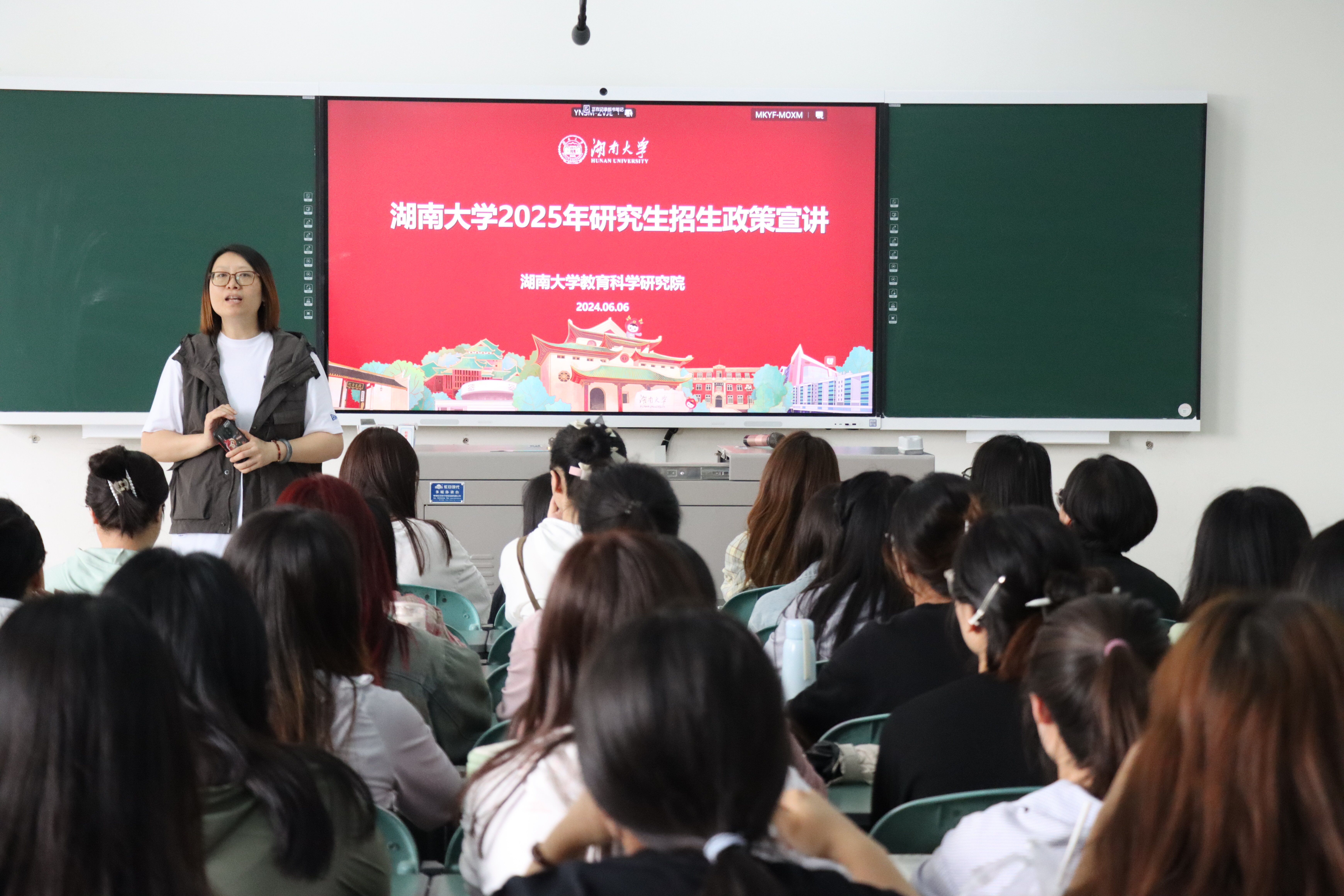 2024-06-07为帮助更多优秀学子了解湖南大学,畅通考研学子政策咨询渠道,6月6日中午,湖南大学研究生招生宣讲会在文荟楼211教室顺利举行。本次宣讲邀请湖南大学教育科学研究院副院长阳荣威作为主讲嘉宾,书院党委副书记杨扬,辅导员禹文杰以及2021级行政管理专业和教师教育学院有考研意向的学生代表参加本次活动。会上,阳荣威围绕校院概况、人才培养、科学研究、导师队伍、招生政策等方面,以“走进湖大”为开篇,回顾了湖南大学的历史沿革和校园文化。他介绍,湖南大学作为一所历史悠久、底蕴深厚的综合性大学,始终秉承“实事求是、敢为人先”的校训,致力于培养具有创新精神和实践能力的高素质人才。随后,阳荣威详细介绍了教育科学研究院的学院概况。他提到,该学院拥有一支高水平的师资队伍和先进的教学设施,能为研究生提供良好的学术氛围和科研条件,全面提升研究生的综合素质和创新能力,发展卓越而有灵魂的研究生教育。他指出,湖南大学拥有一批学术造诣深厚、教学经验丰富、科研项目高级、论文期刊高质的导师队伍,能为研究生提供宝贵的科研资源和学术指导。最后,阳荣威详细解读了湖南大学研究生招生政策。他强调,学校将继续优化招生政策,为广大考生提供更加公平、公正、透明的招生环境。同时,他也鼓励同学们积极报考湖南大学,在自身热爱的领域继续深耕。此次宣讲会不仅让考生们全面了解了湖南大学研究生教育的特色和优势,还为他们提供了宝贵的招生信息和指导建议。相信在不久的将...