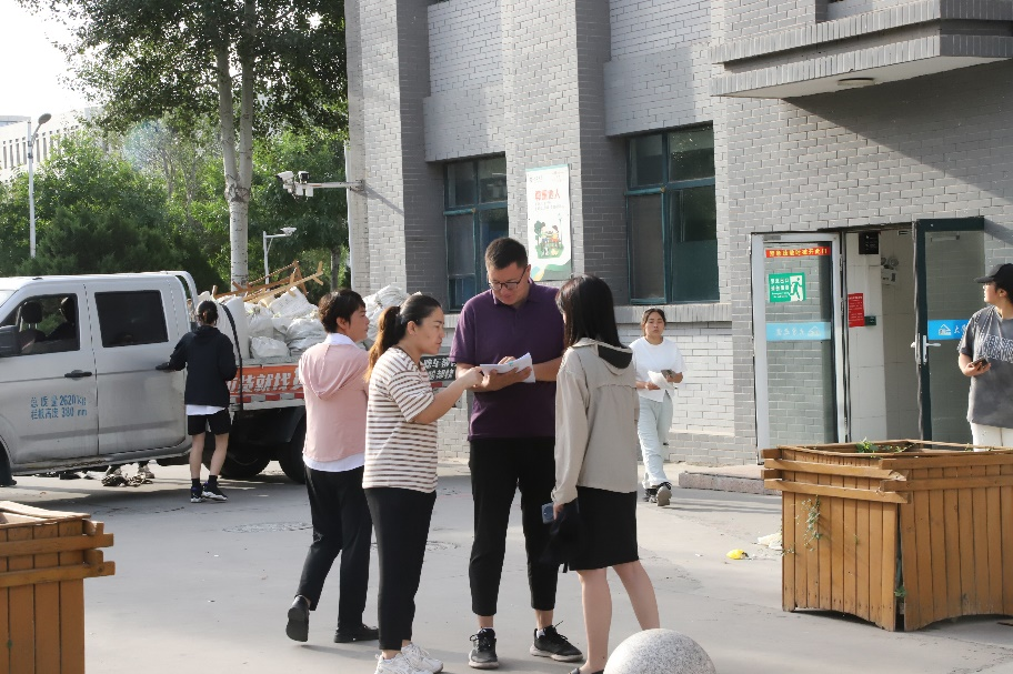 2024-07-03为更好地促进学生住宿规范化、科学化,优化学生住宿管理与服务,合理且高效地解决学校宿舍紧张的局面,根据学校统一安排部署,勤学书院于6月28日、7月1日两天开展了2021级本科生宿舍搬迁工作。书院党委书记、院长马瑜,党委副书记靳永雄、杨扬,副院长常江、王巳卉,全体辅导员前往现场指挥、协调学生搬迁工作,另有书院三个功能型党小组、书院研究生党员先锋志愿者、学生事务管理服务中心志愿者参与助力,确保搬迁工作有序、高效进行。为确保学生公寓搬迁工作的顺利开展,书院党委贯彻落实“以服务学生为中心”的工作原则,精心策划,提前安排,确保搬迁过程高效运行。搬迁当天,书院为学生提供了编织袋、矿泉水、手套等物资保障。盛夏的酷暑并没有影响志愿者们的服务热情,看到行李繁多的同学,志愿者在第一时间伸出援手,书院老师也加入其中,齐心协力、互相帮助。大家忙碌的身影,无不诠释着青春的力量和担当,也展现了我院师生服务他人的优秀品质。搬迁的各位同学与志愿者们协同一心,高效完成工作。同学们搬至金凤校区后,书院以宿舍为单位为2021级学生分发了西瓜,随后书院领导、辅导员走访学生宿舍,与同学们交流搬迁过程中的感受与收获、搬迁过程中出现的问题、期末考试情况、假期安排等,并细心叮嘱大家注意假期安全,让同学们切实地体会到书院对同学们的勉励与关怀